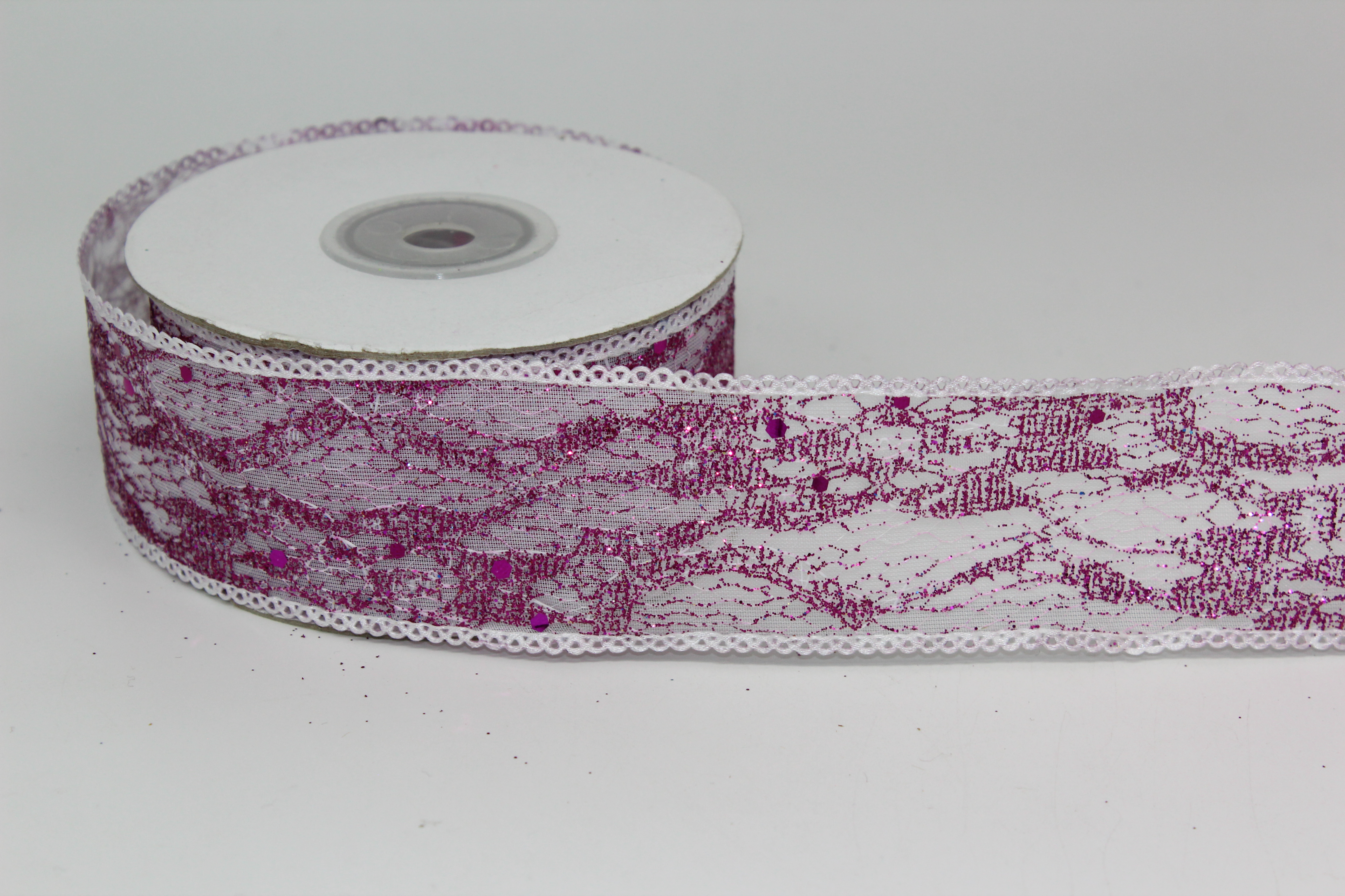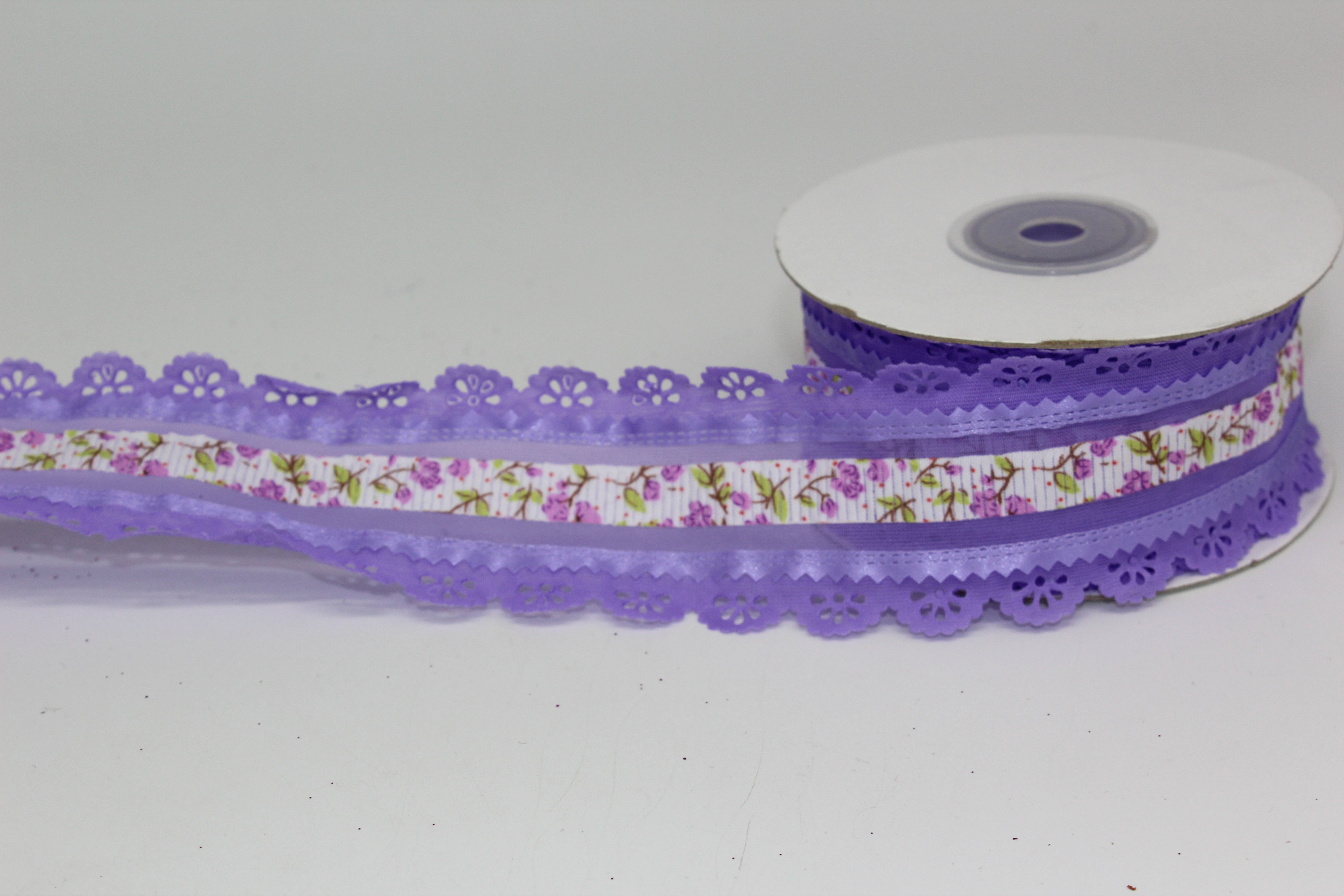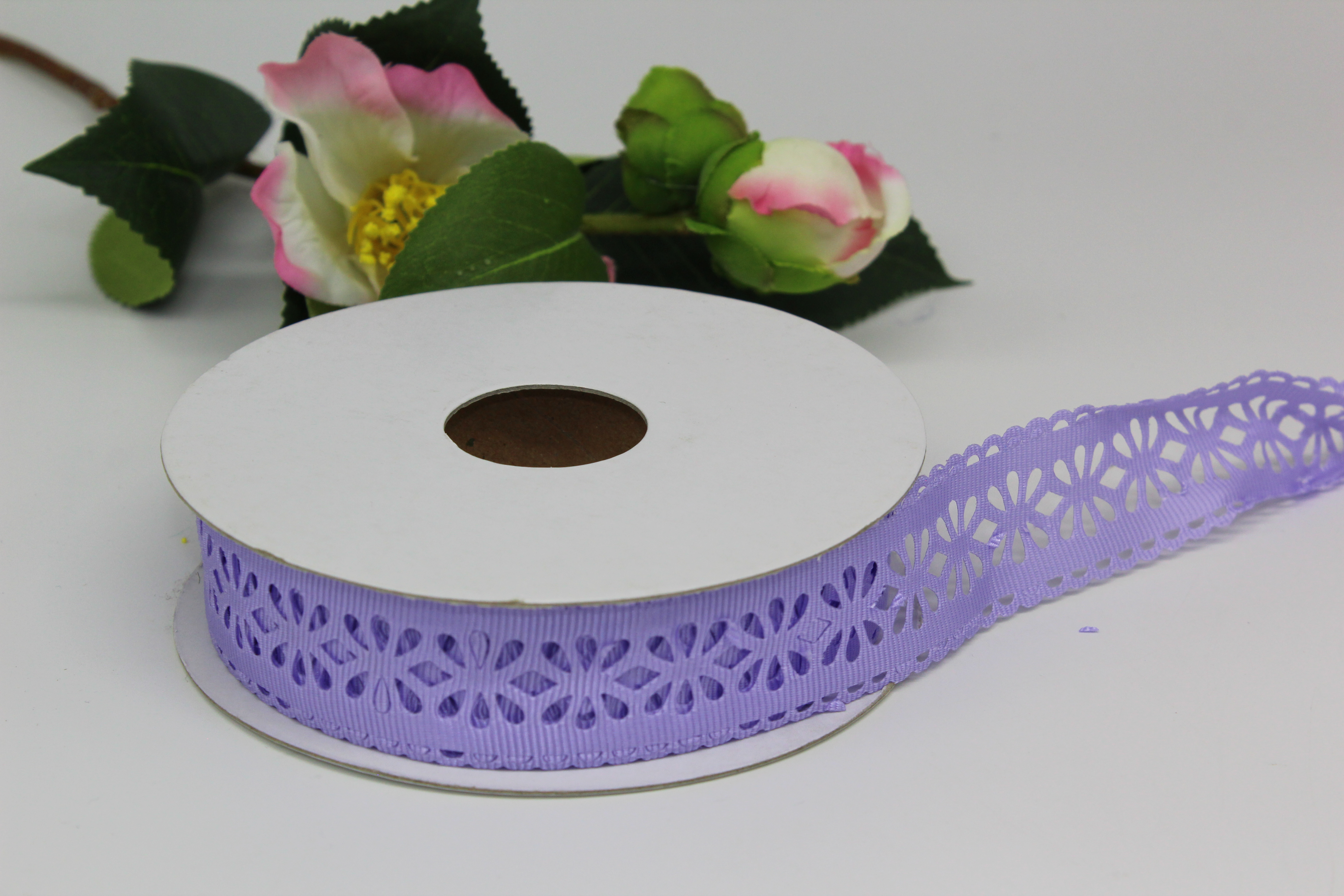 Лента репсовая с прорезанными цветочками 2,5 см 25 ярдов сиреневая