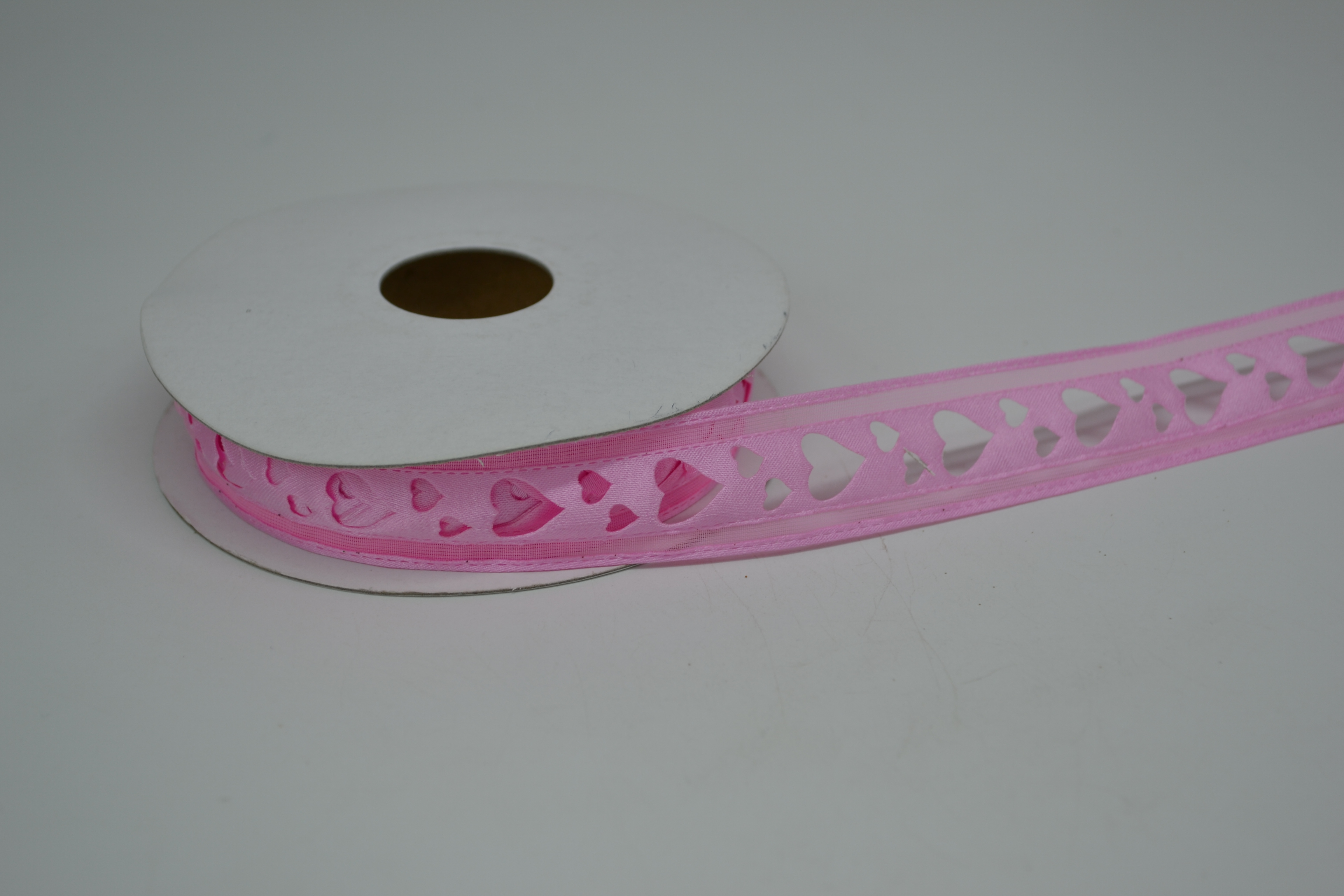 Лента атласная с прорезанными сердечками 2,5 см 25 ярдов розовая