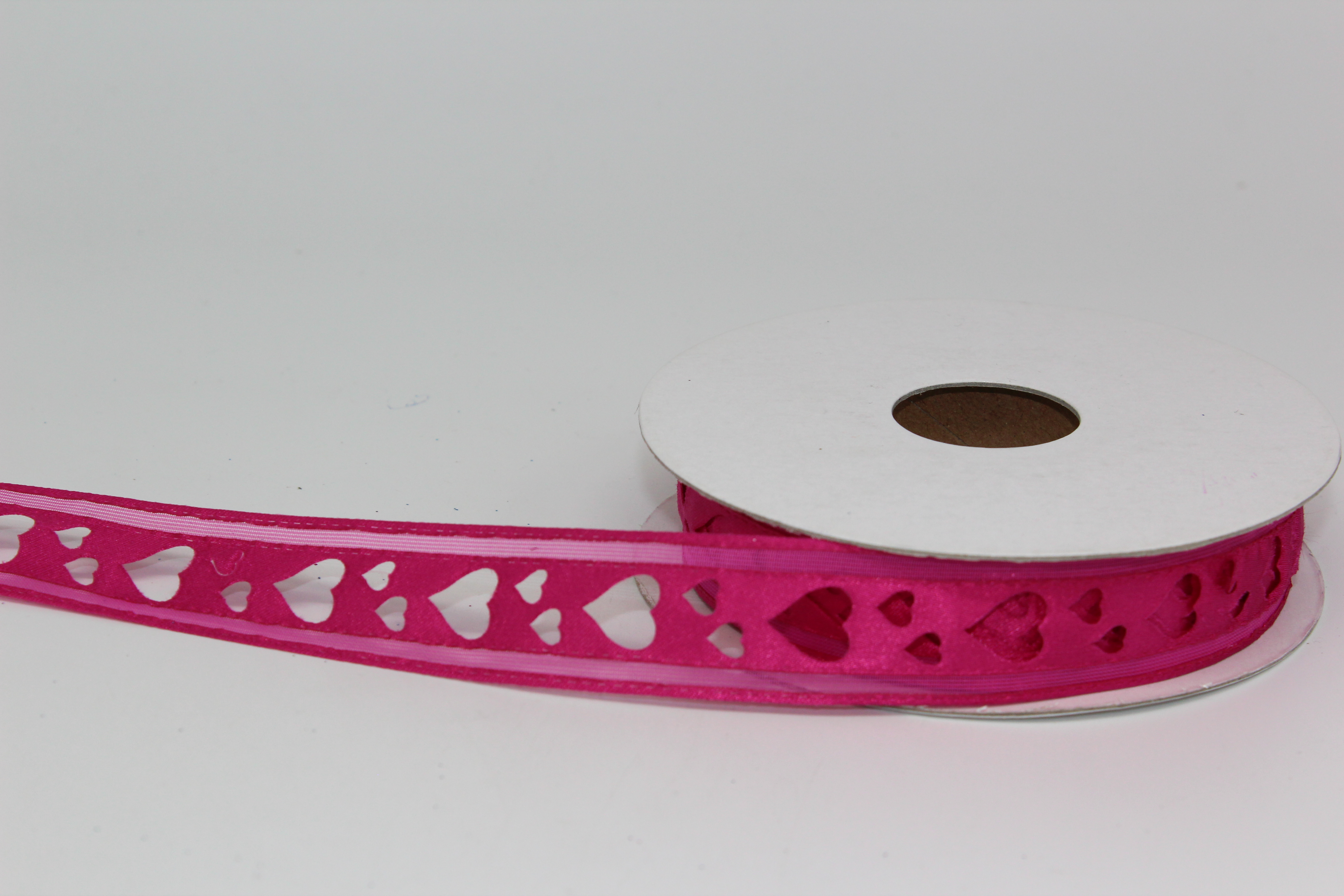 Лента атласная с прорезанными сердечками 2,5 см 25 ярдов фуксия