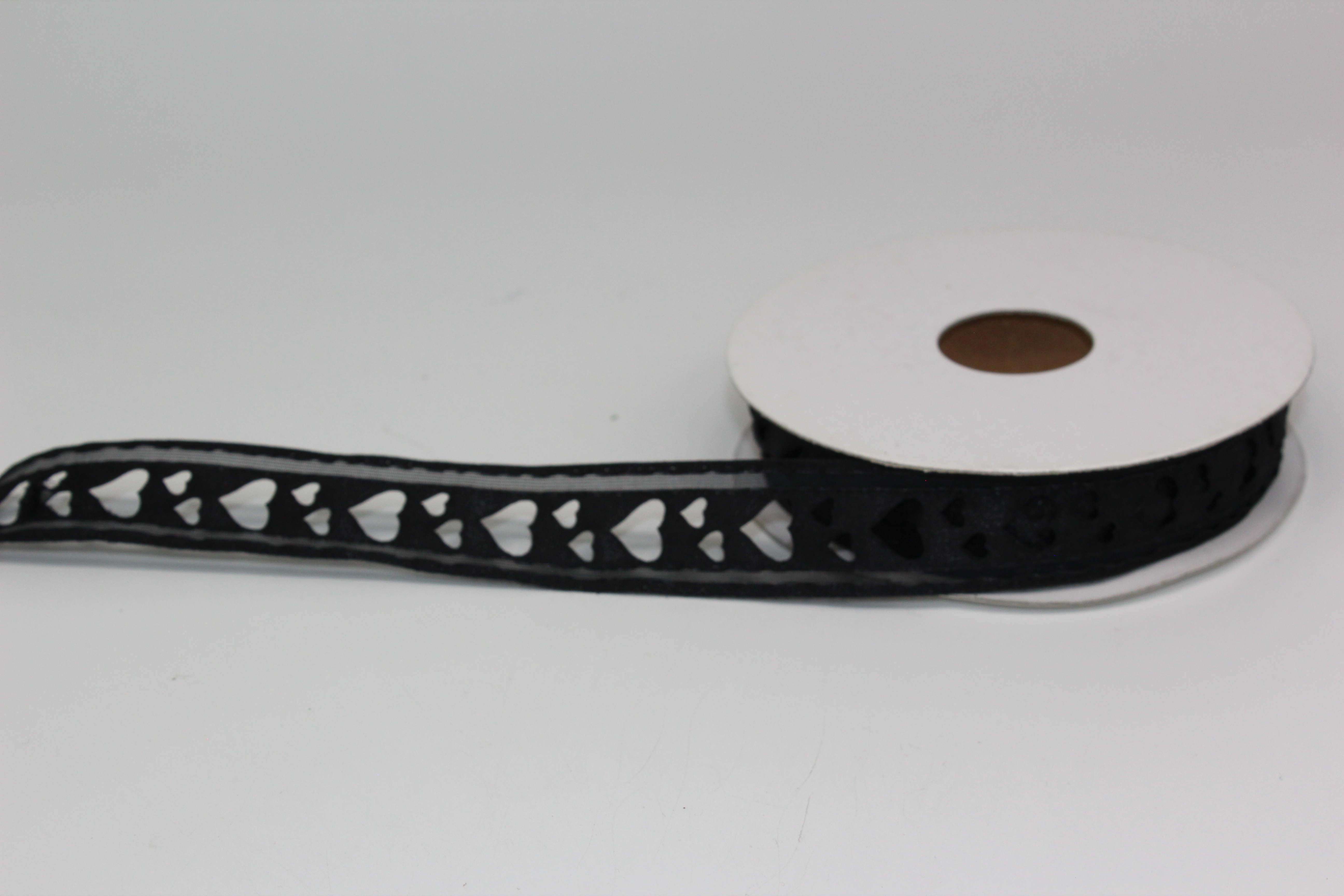 Лента атласная с прорезанными сердечками 2,5 см 25 ярдов чёрная