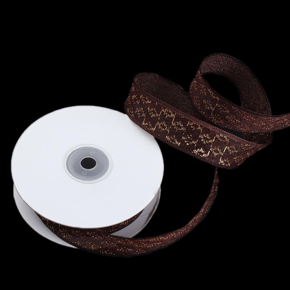 Лента паутинка с золотым люриксом 2,5 см 15 ярдов коричневая