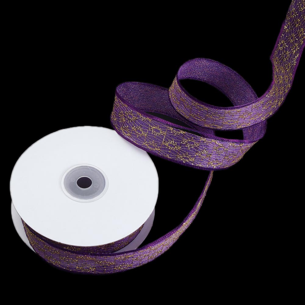 Лента паутинка с золотым люриксом 2,5 см 15 ярдов фиолетовая