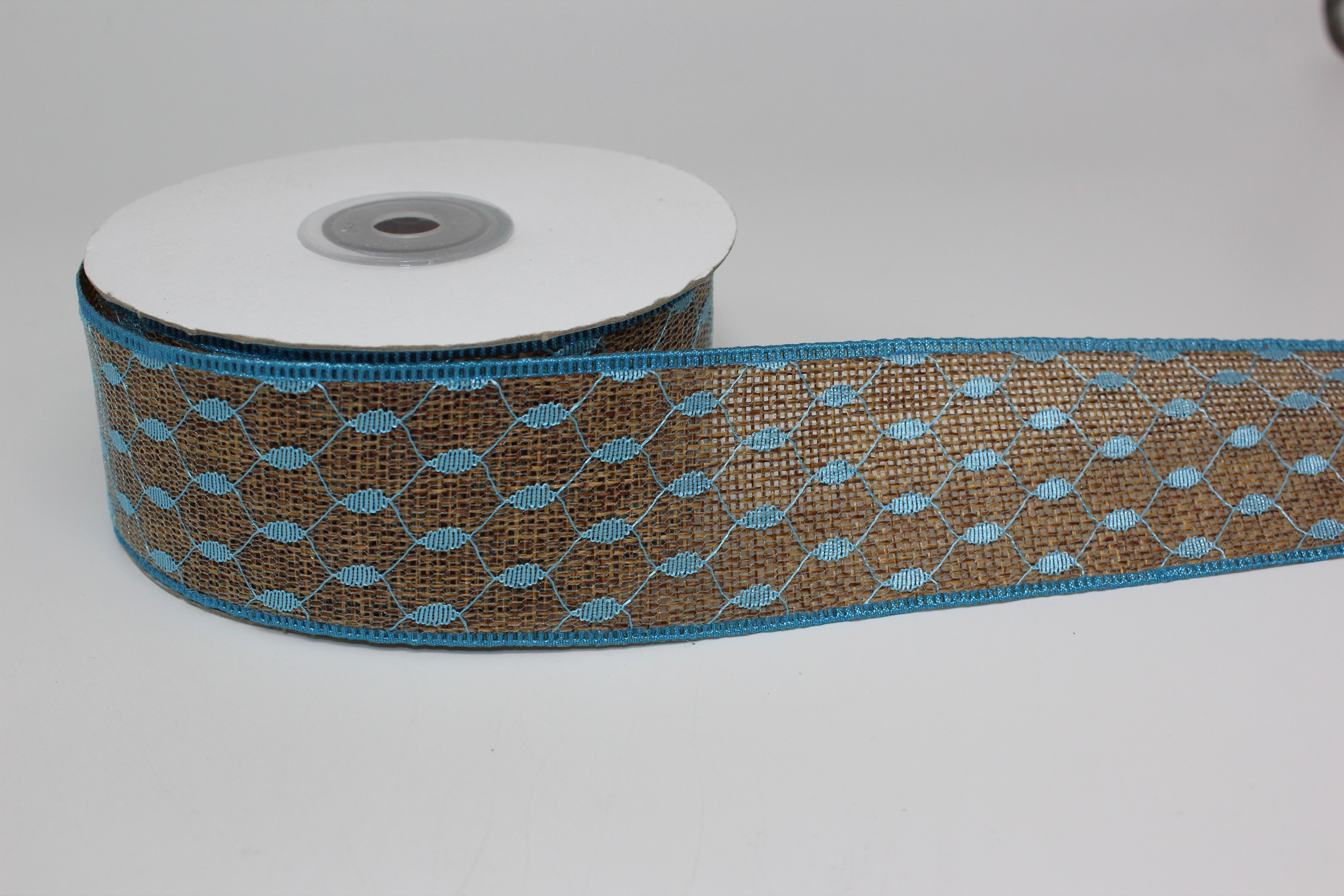 Лента мешковина 4 см 10 ярдов с голубым узором