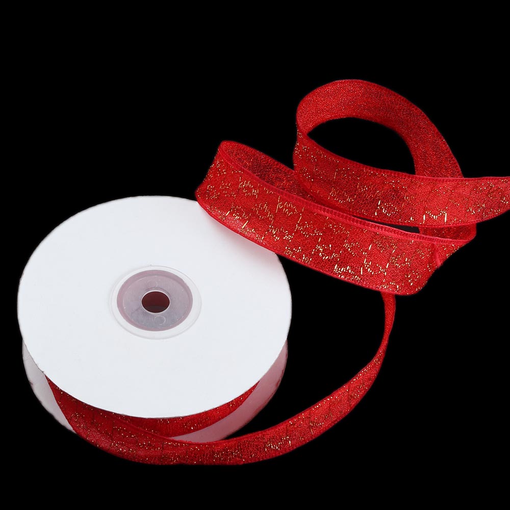 Лента паутинка с золотым люриксом 2,5 см 15 ярдов красная