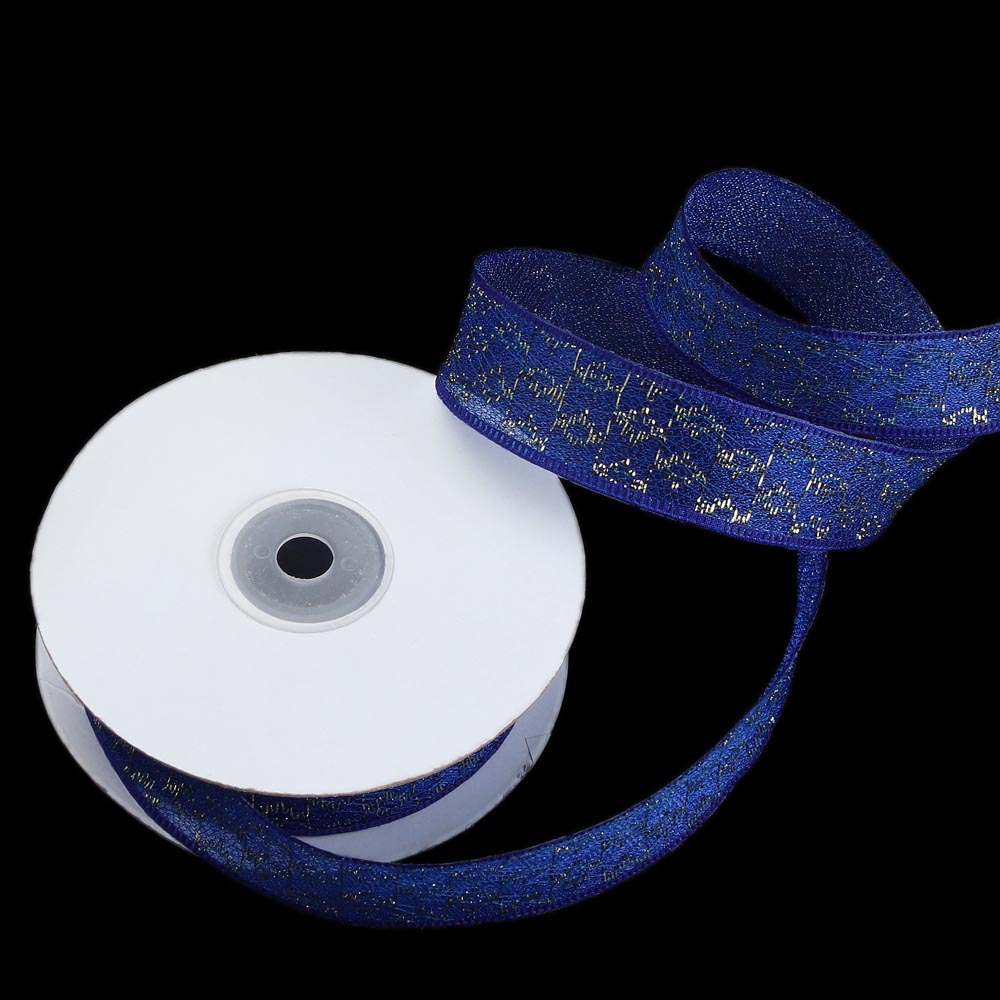 Лента паутинка с золотым люриксом 2,5 см 15 ярдов синяя