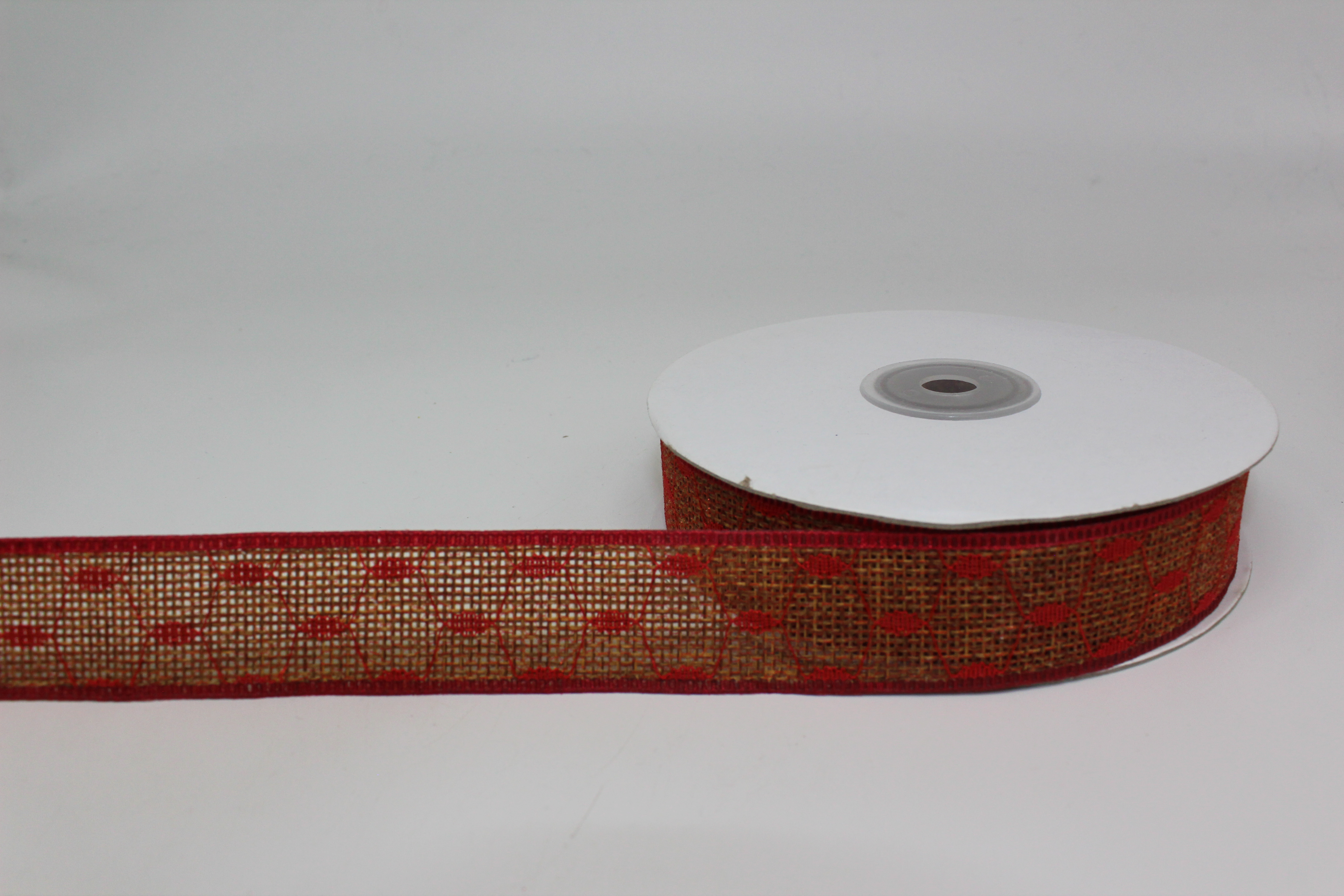 Лента мешковина 2,5 см 15 ярдов с красным узором