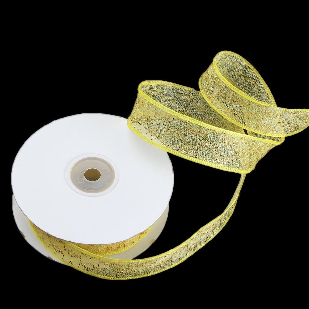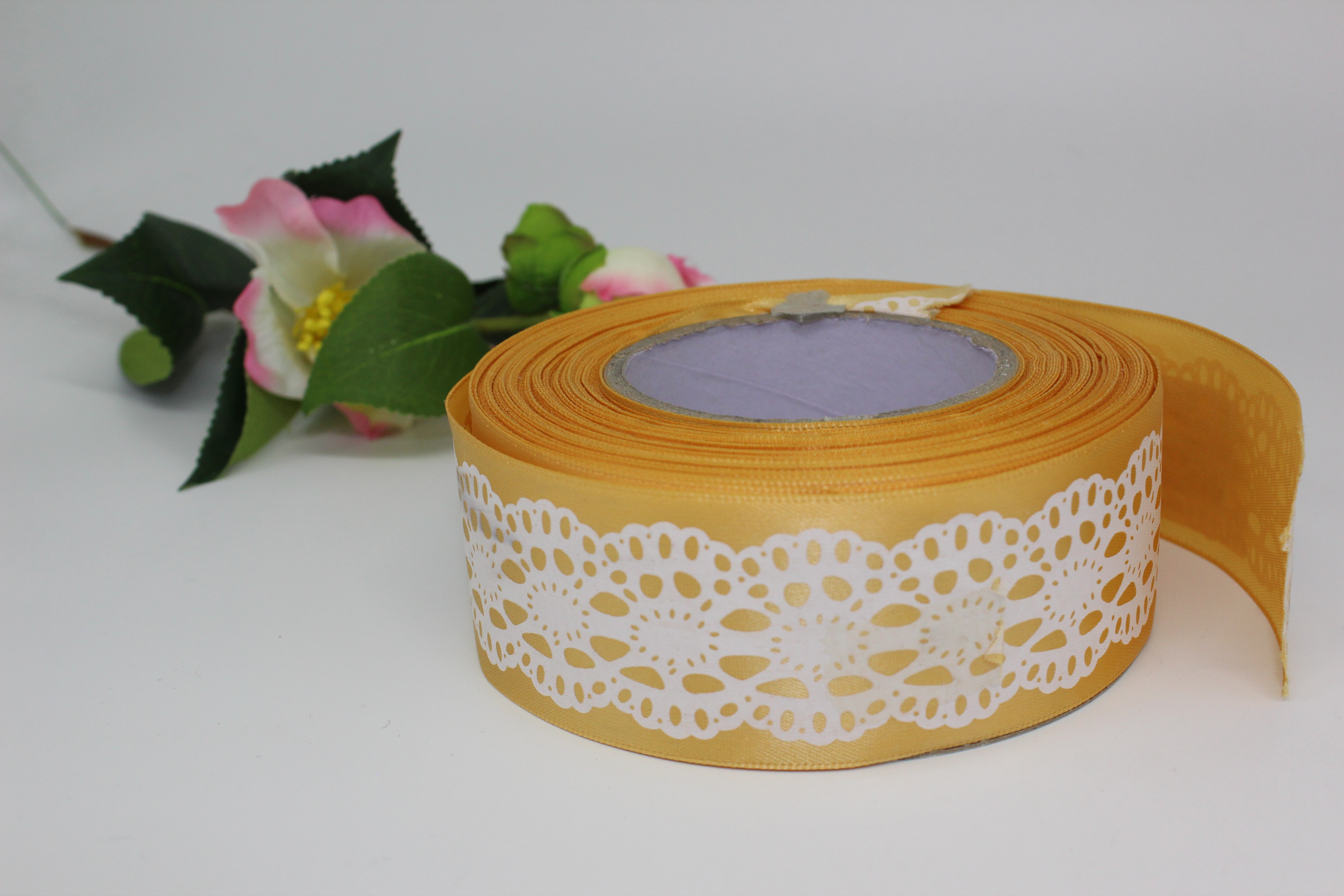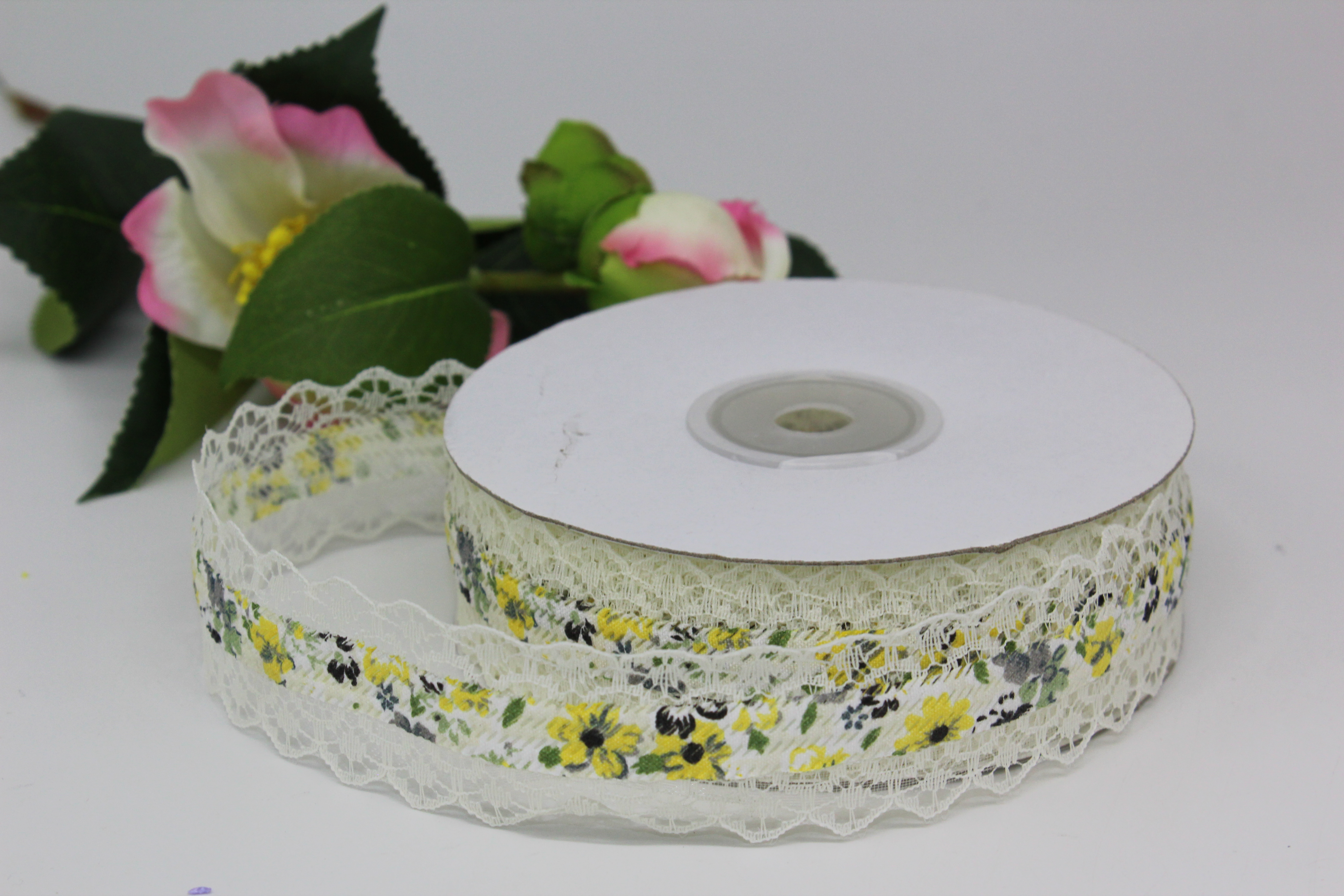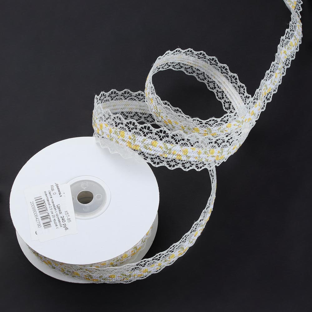 Лента тканевая с кружевной окантовкой 2,5 см 20 ярдов с желтыми цветами