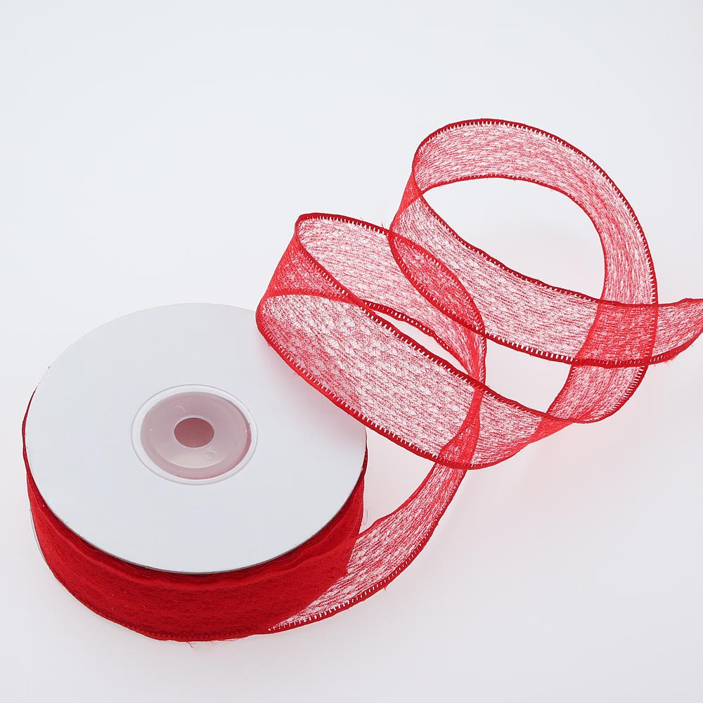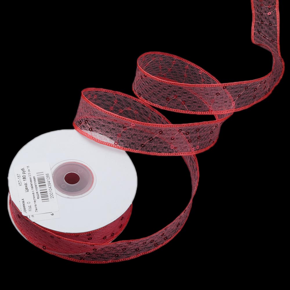 Лента паутинка с пайетками 2,5 см 15 ярдов красная
