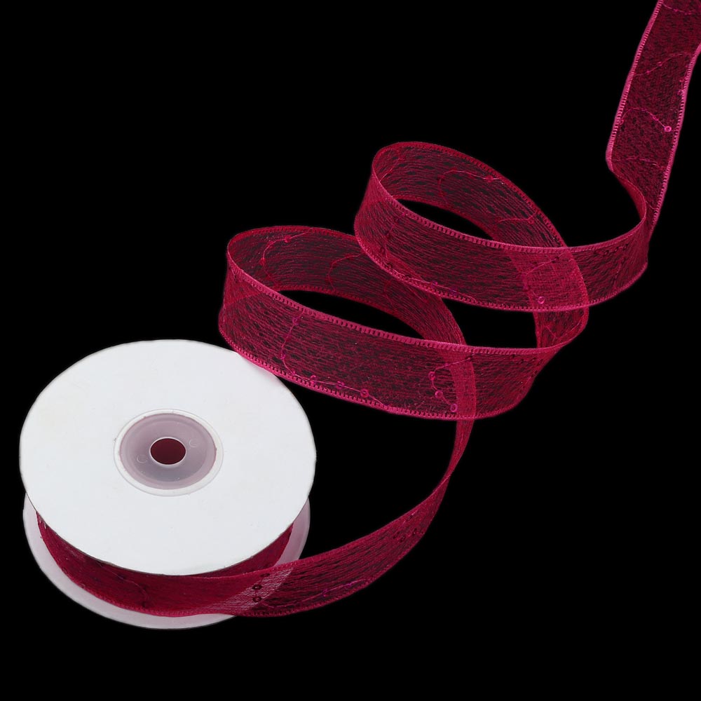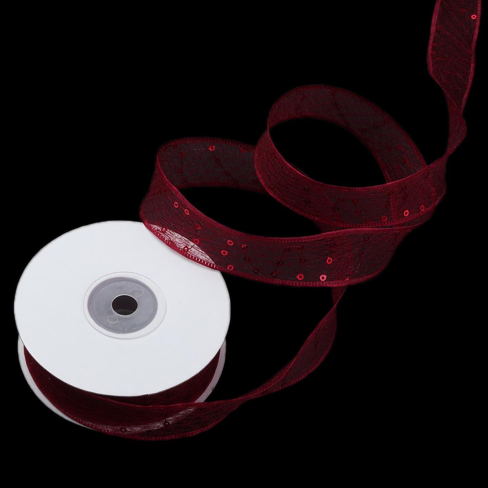 Лента паутинка с пайетками 2,5 см 15 ярдов бордовая
