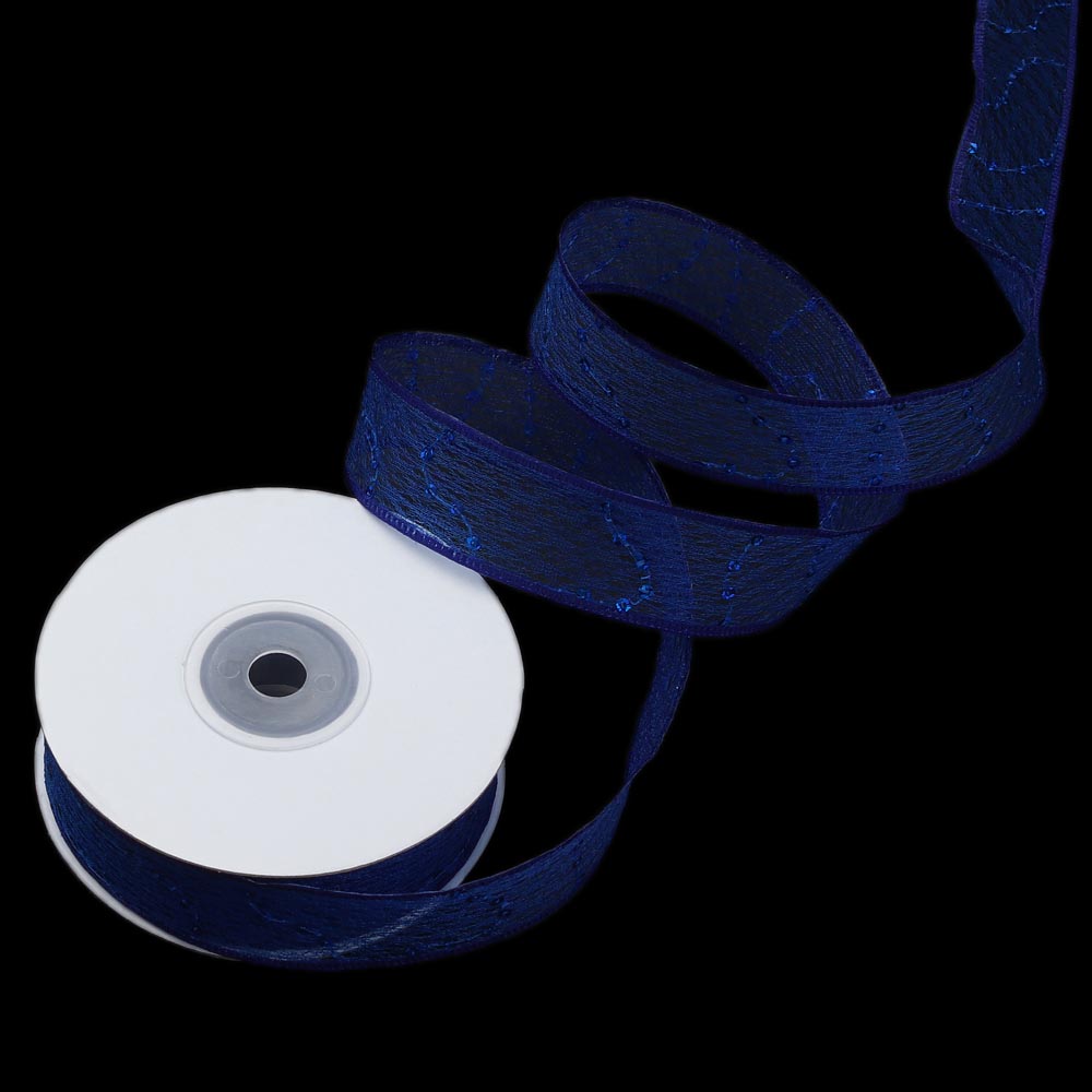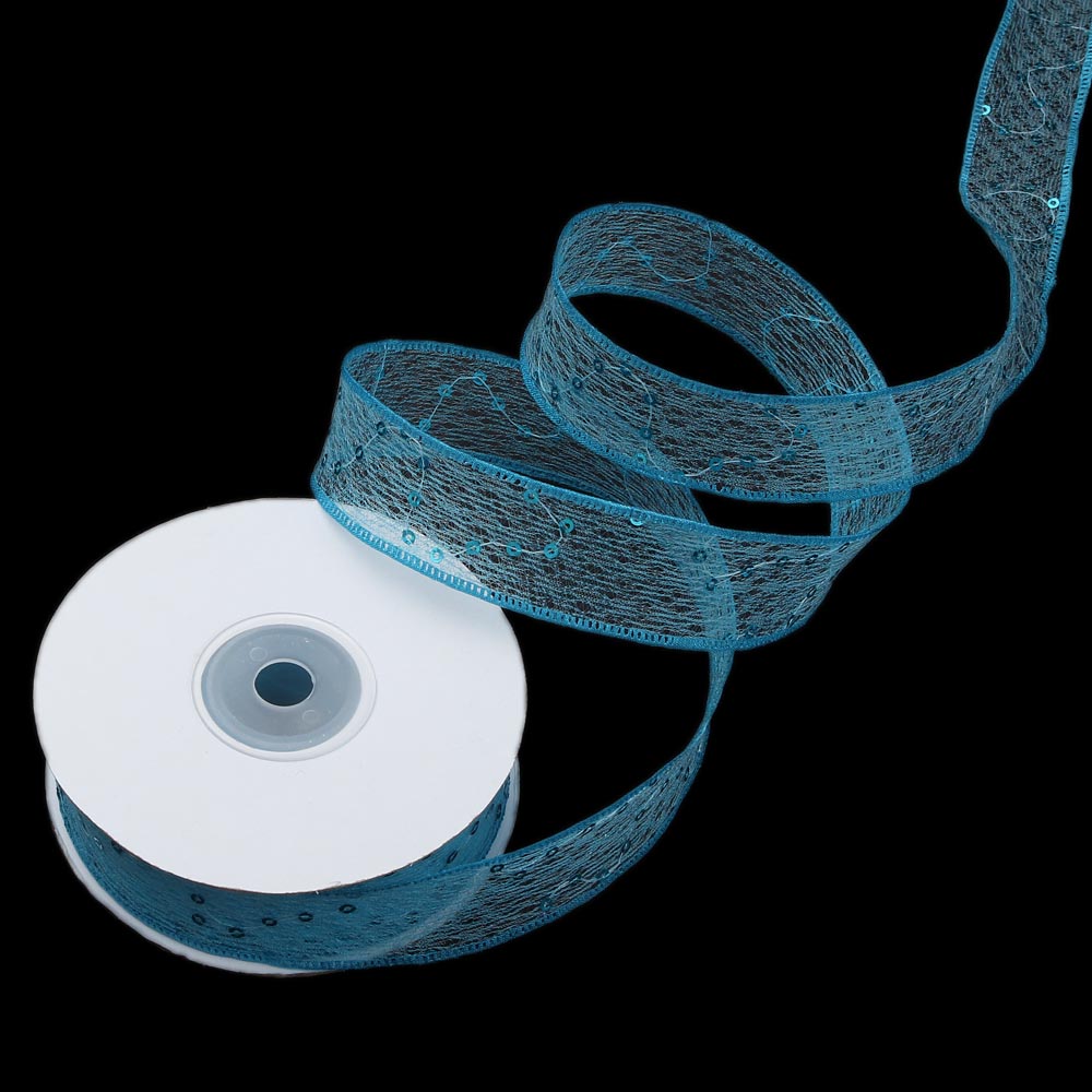 Лента паутинка с пайетками 2,5 см 15 ярдов синяя