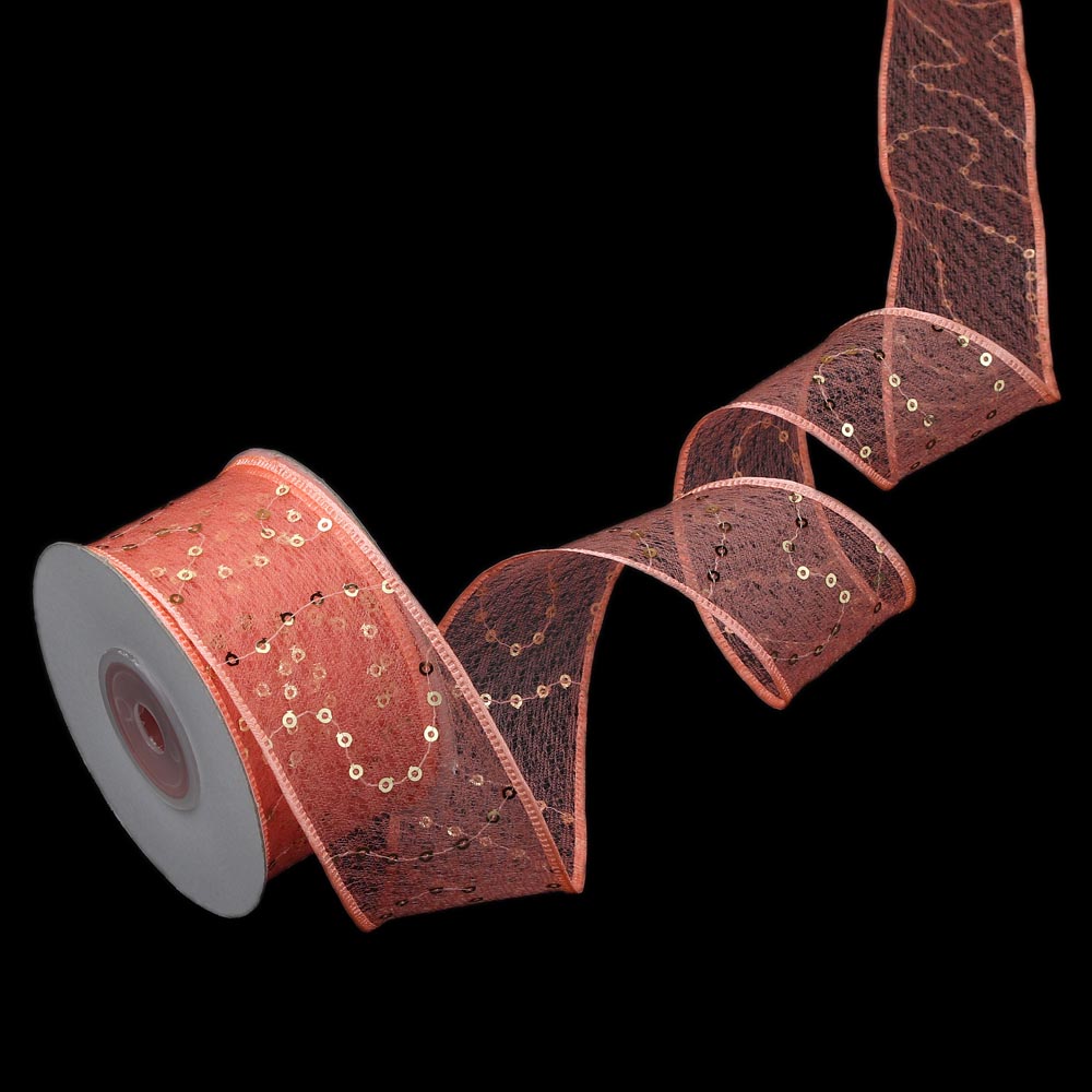 Лента паутинка с пайетками 2,5 см 15 ярдов коралловая