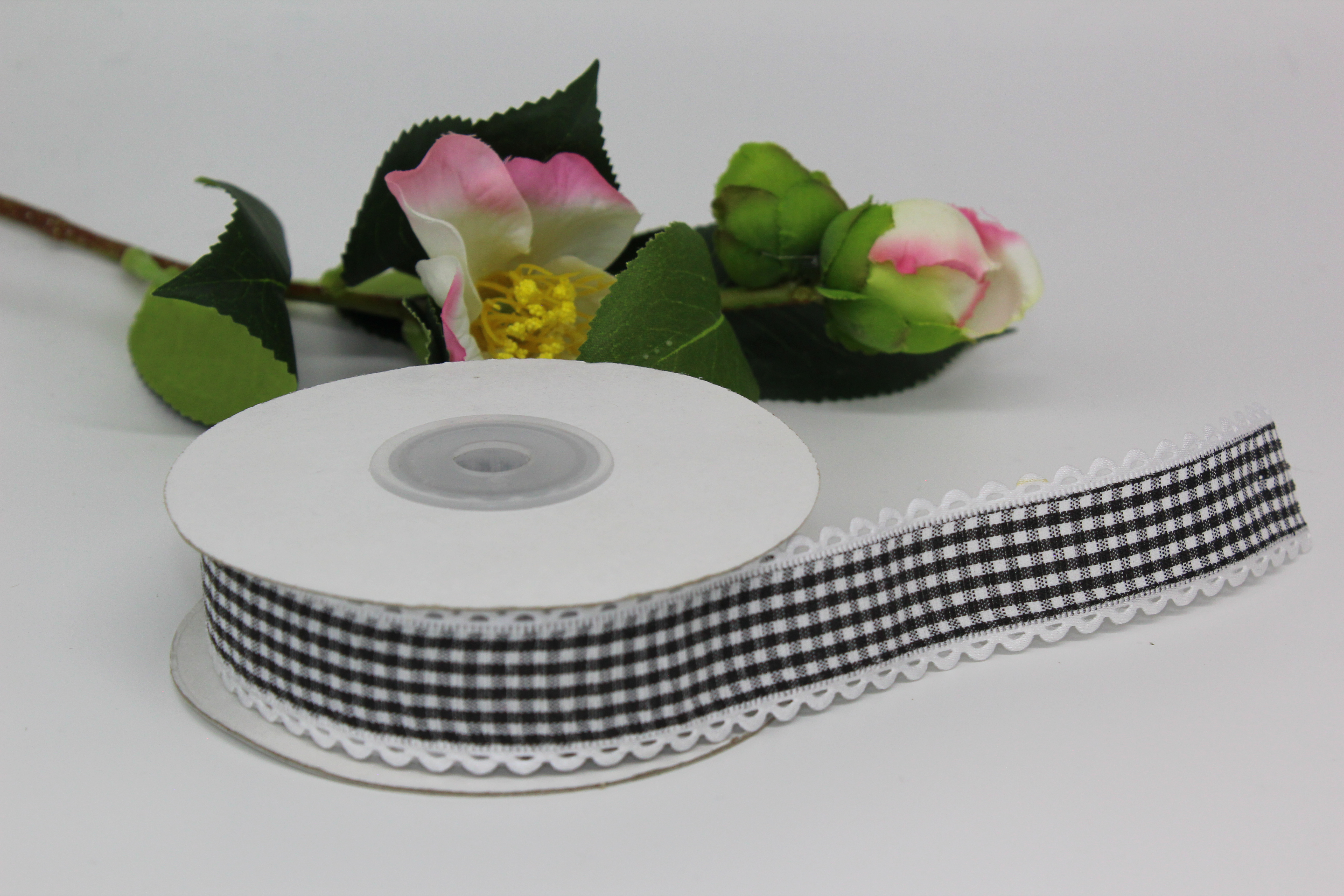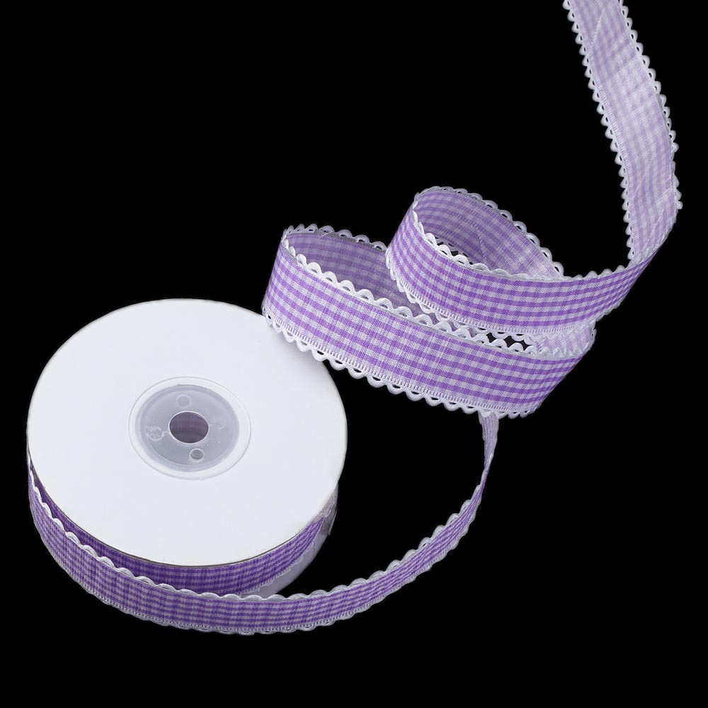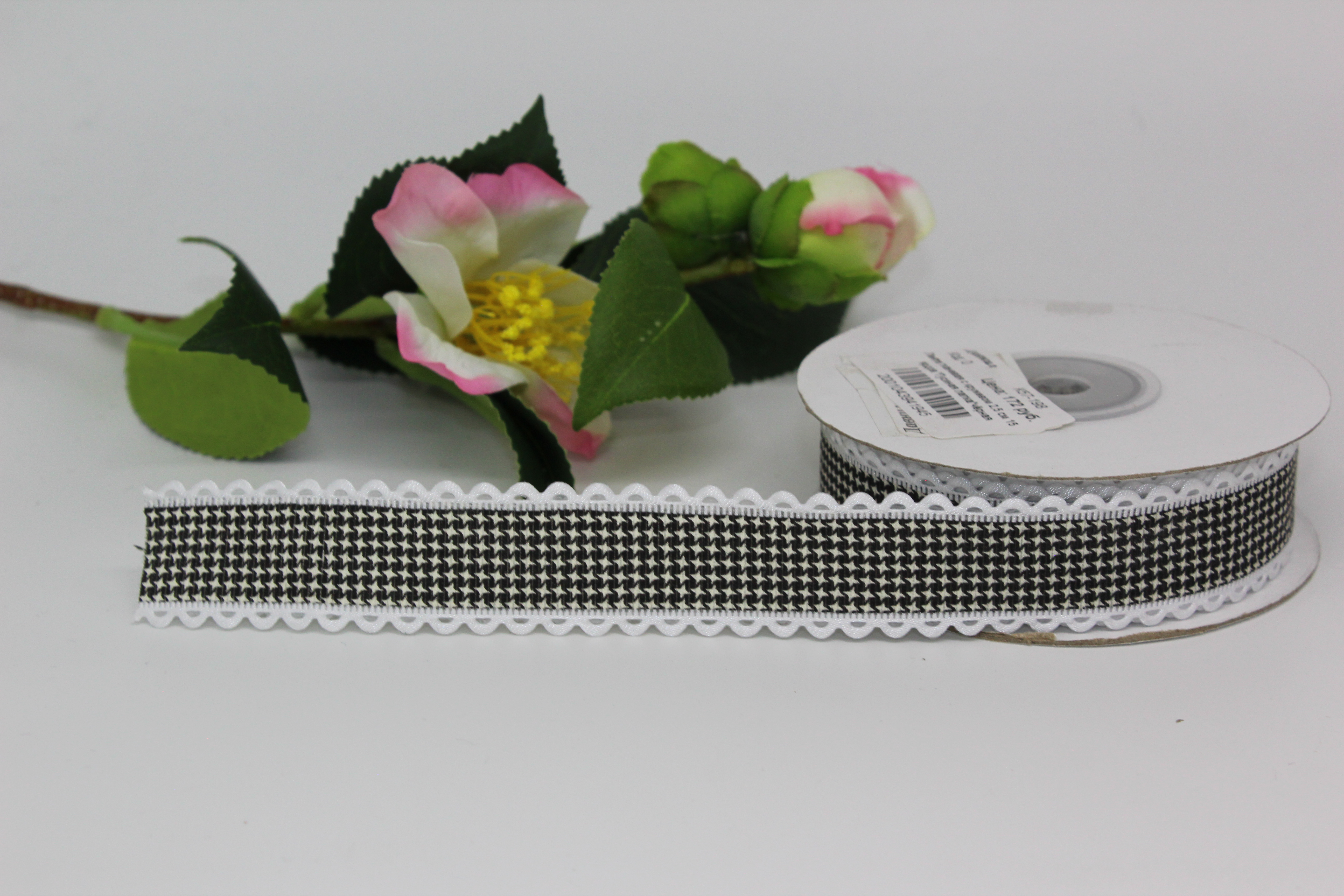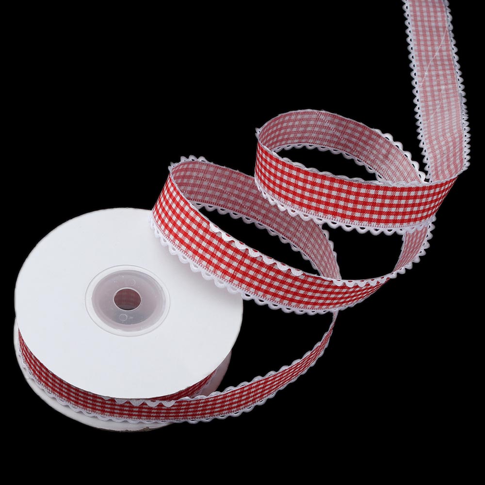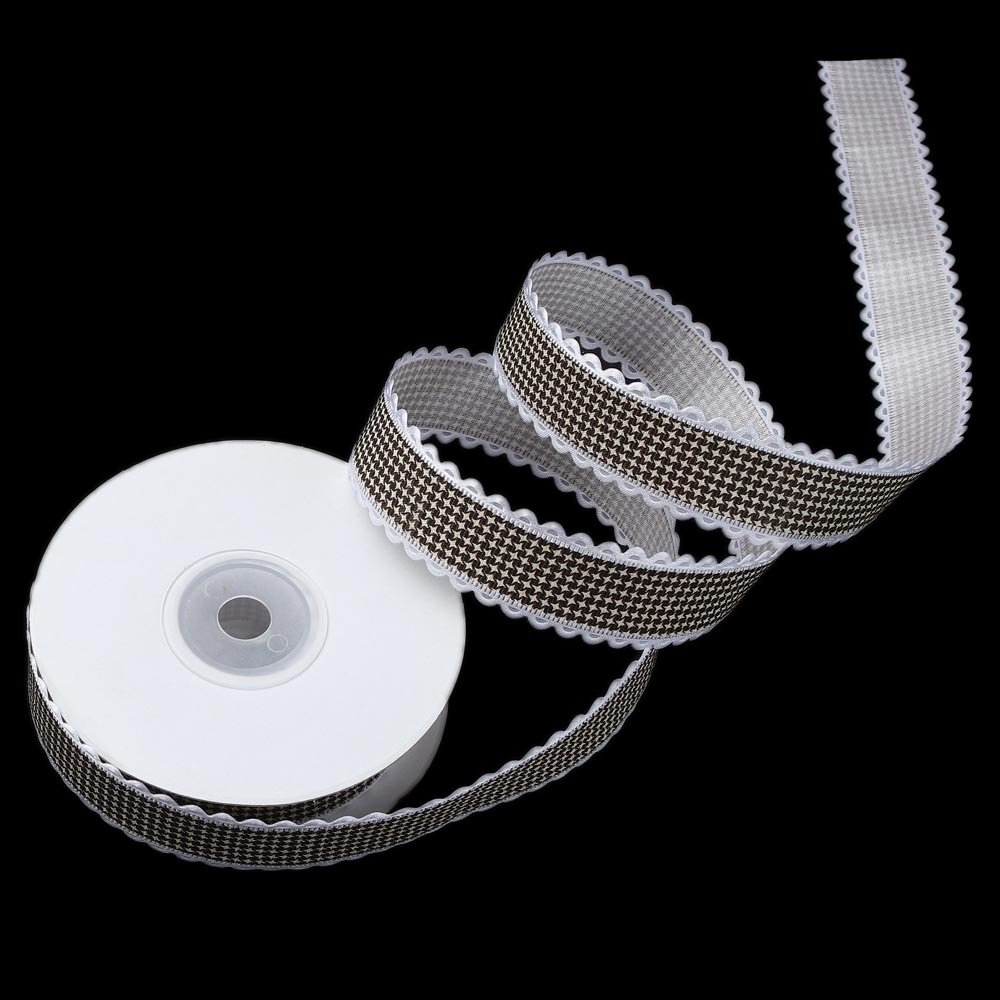 Лента тканевая с кружевом 2,5 см 15 ярдов "Клетка" чёрная