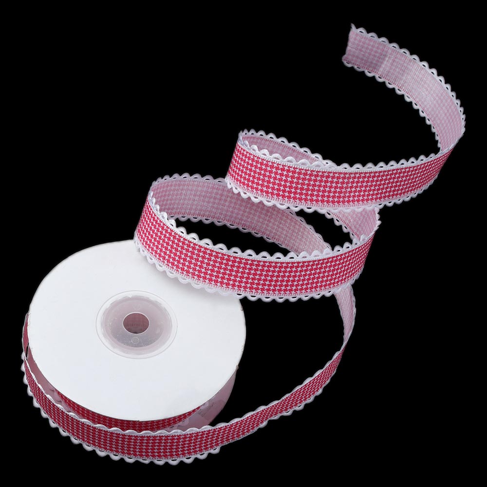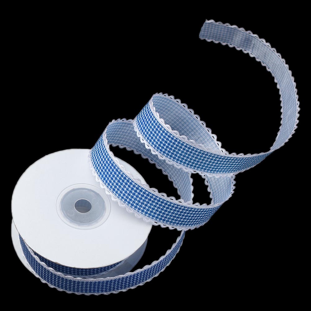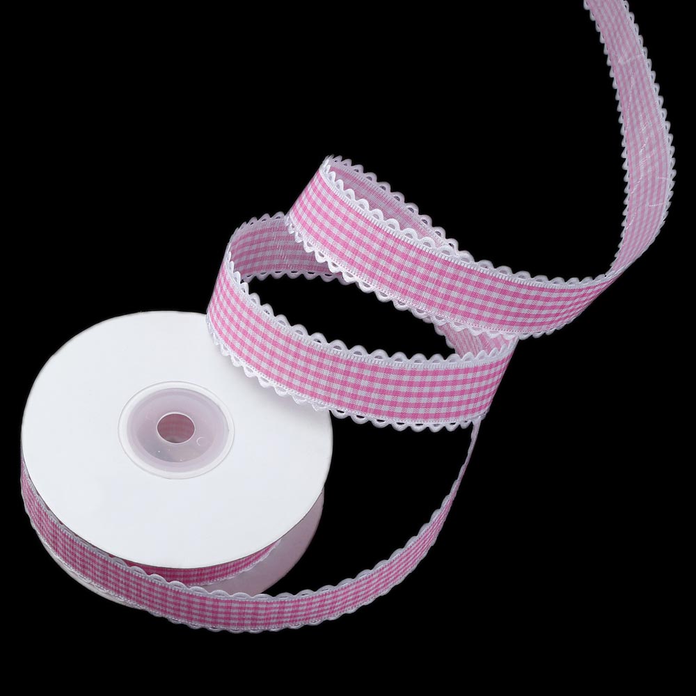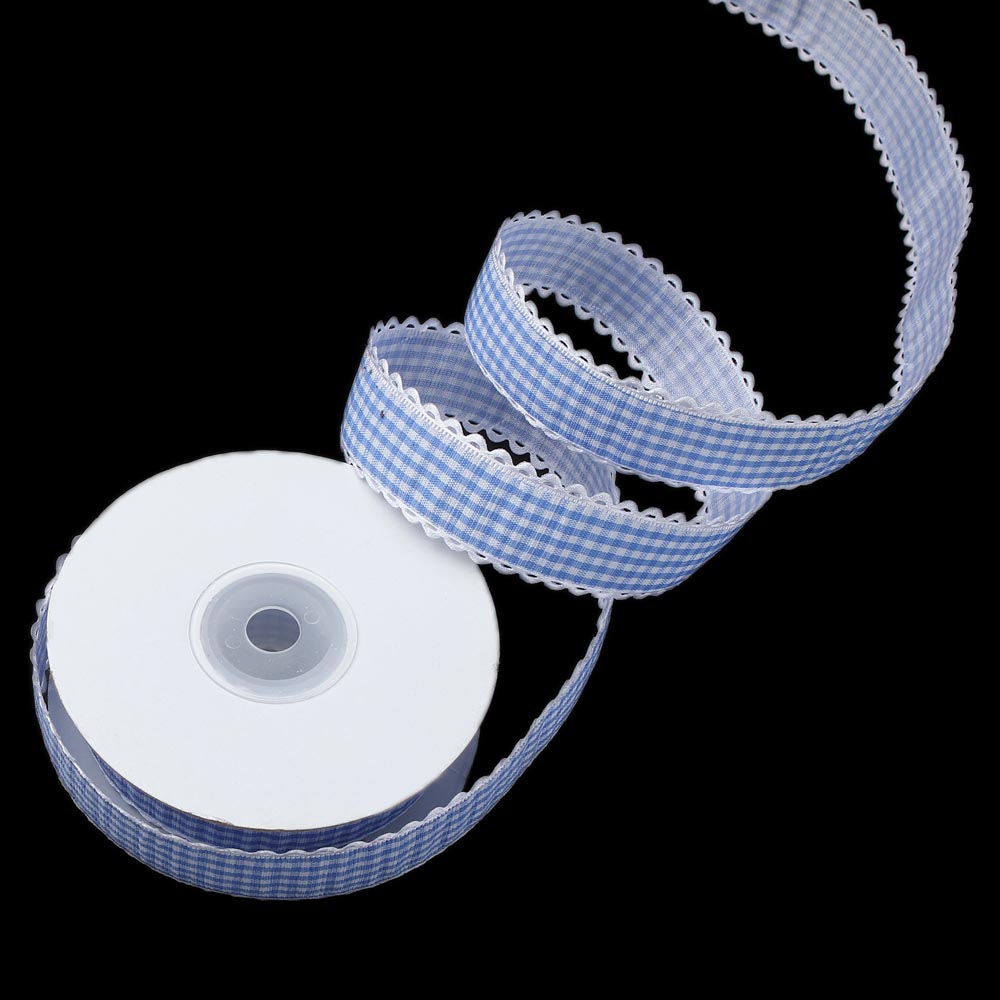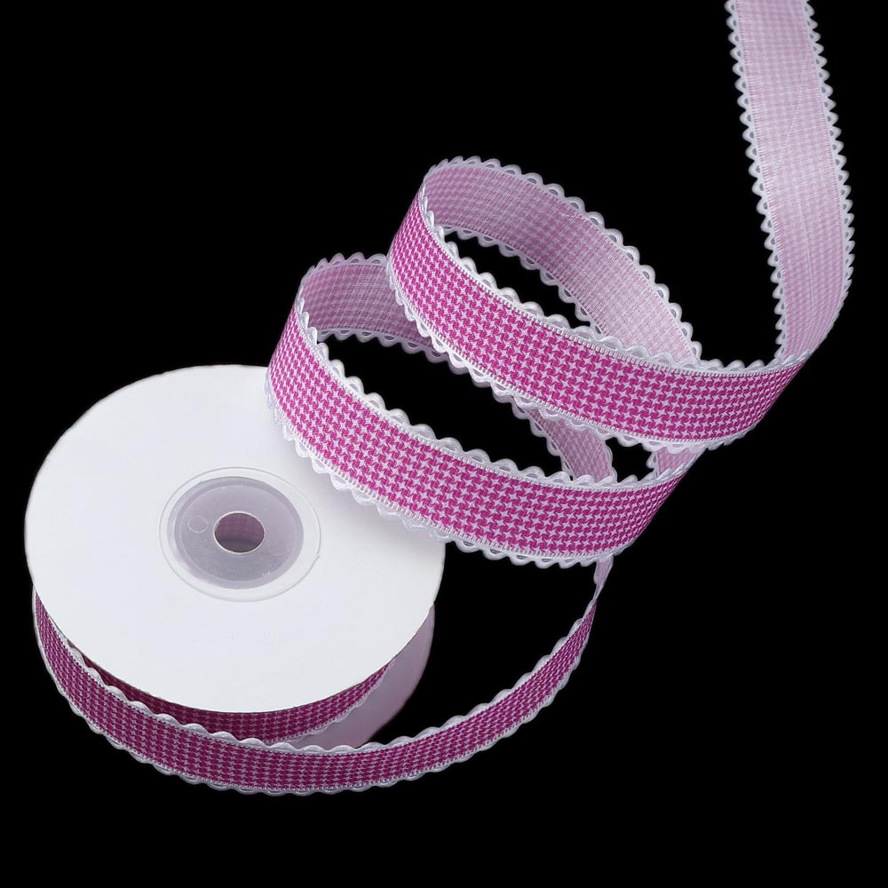 Лента тканевая с кружевом 2,5 см 15 ярдов "Клетка" чёрная