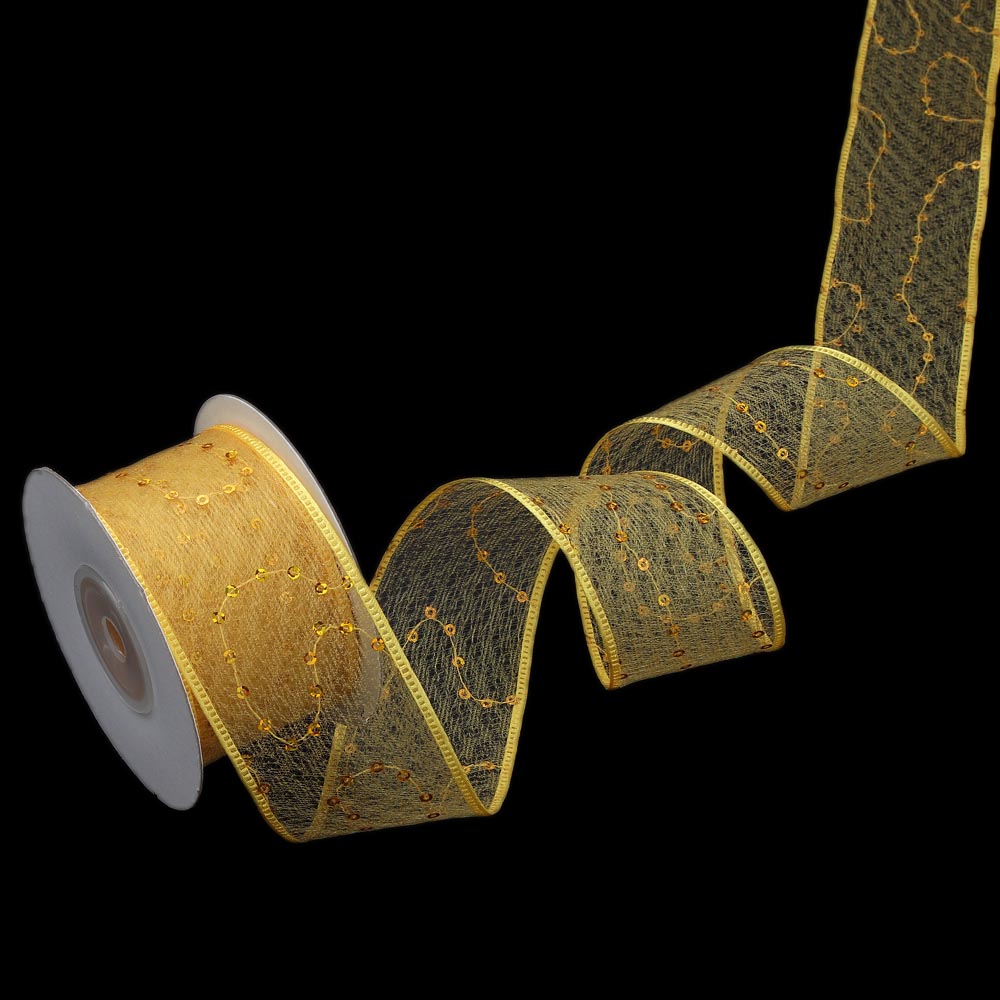 Лента паутинка с пайетками 4 см 10 ярдов жёлтая