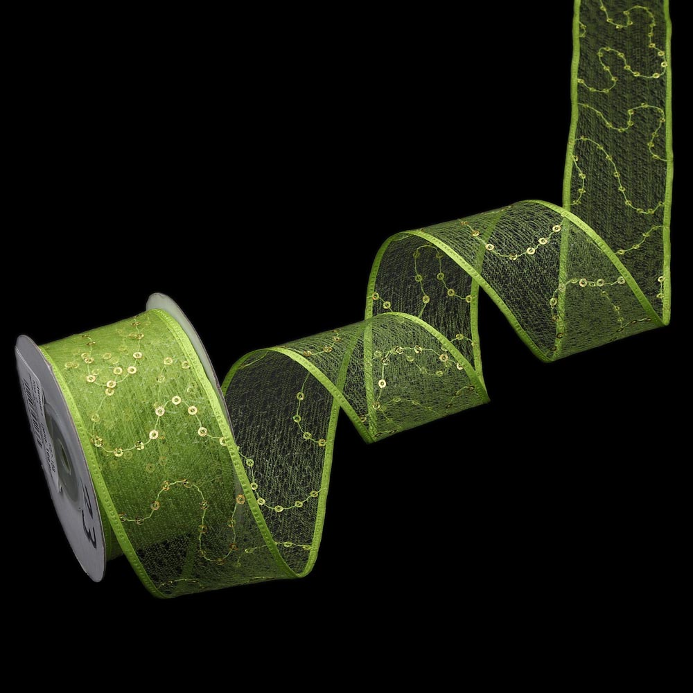 Лента паутинка с пайетками 4 см 10 ярдов салатовая