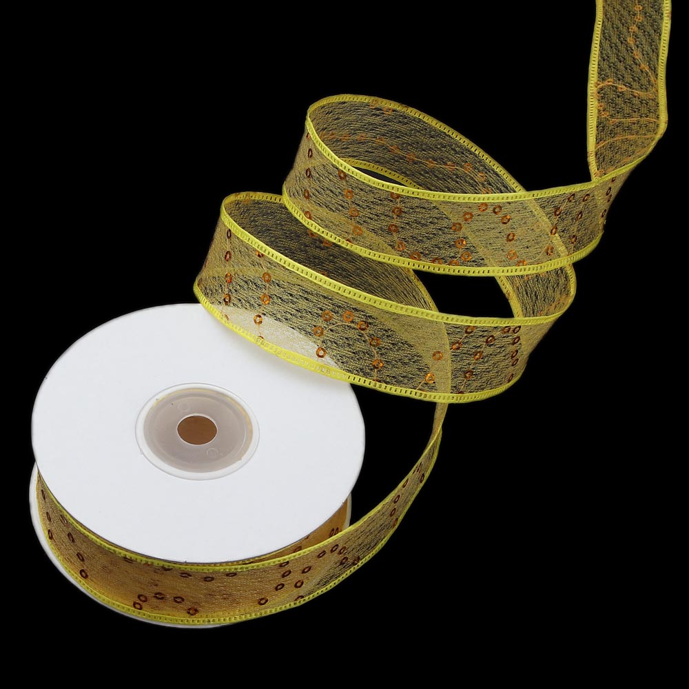 Лента паутинка с пайетками 2,5 см 15 ярдов жёлтая