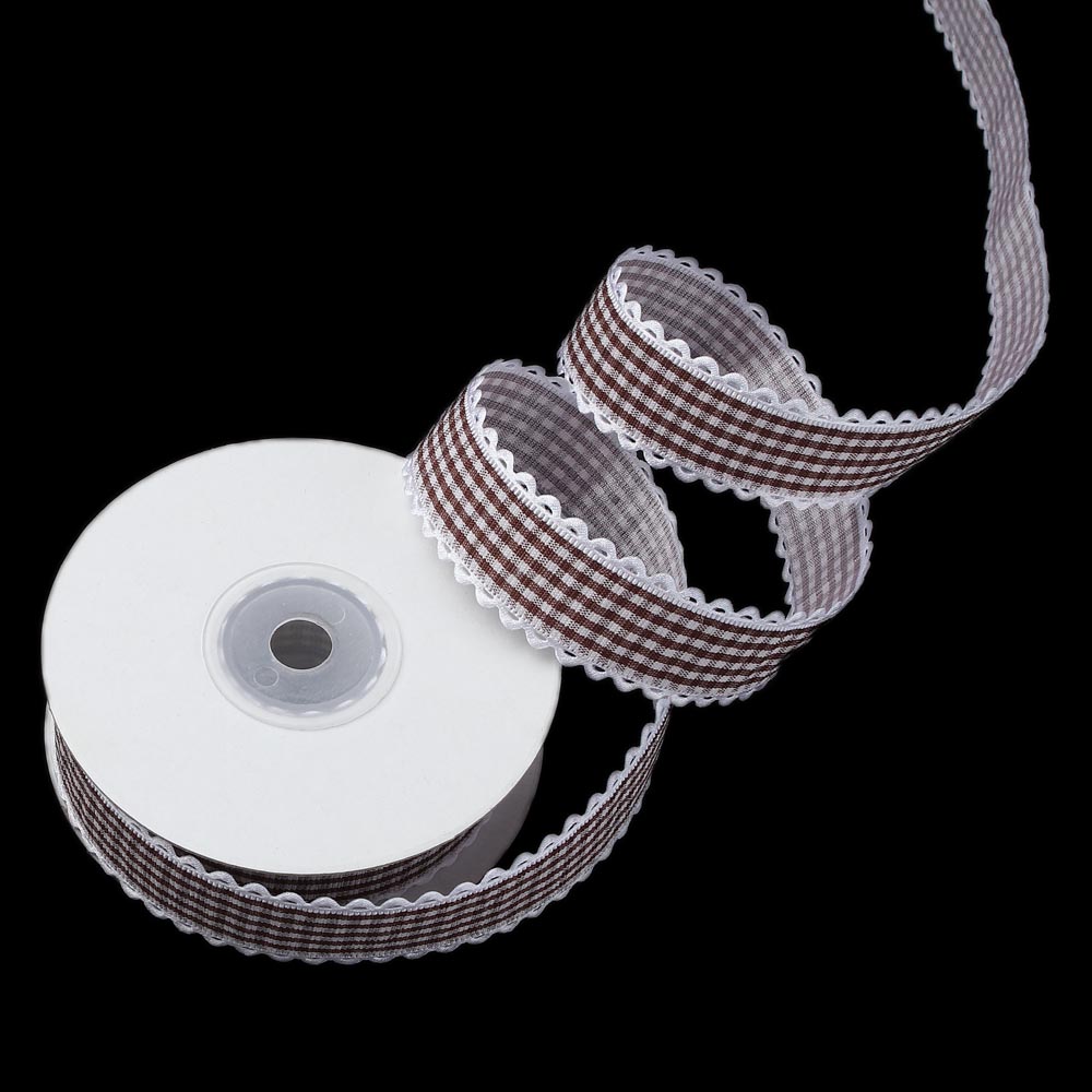 Лента тканевая с кружевом "Клетка"2,5 см 15 ярдов коричневая