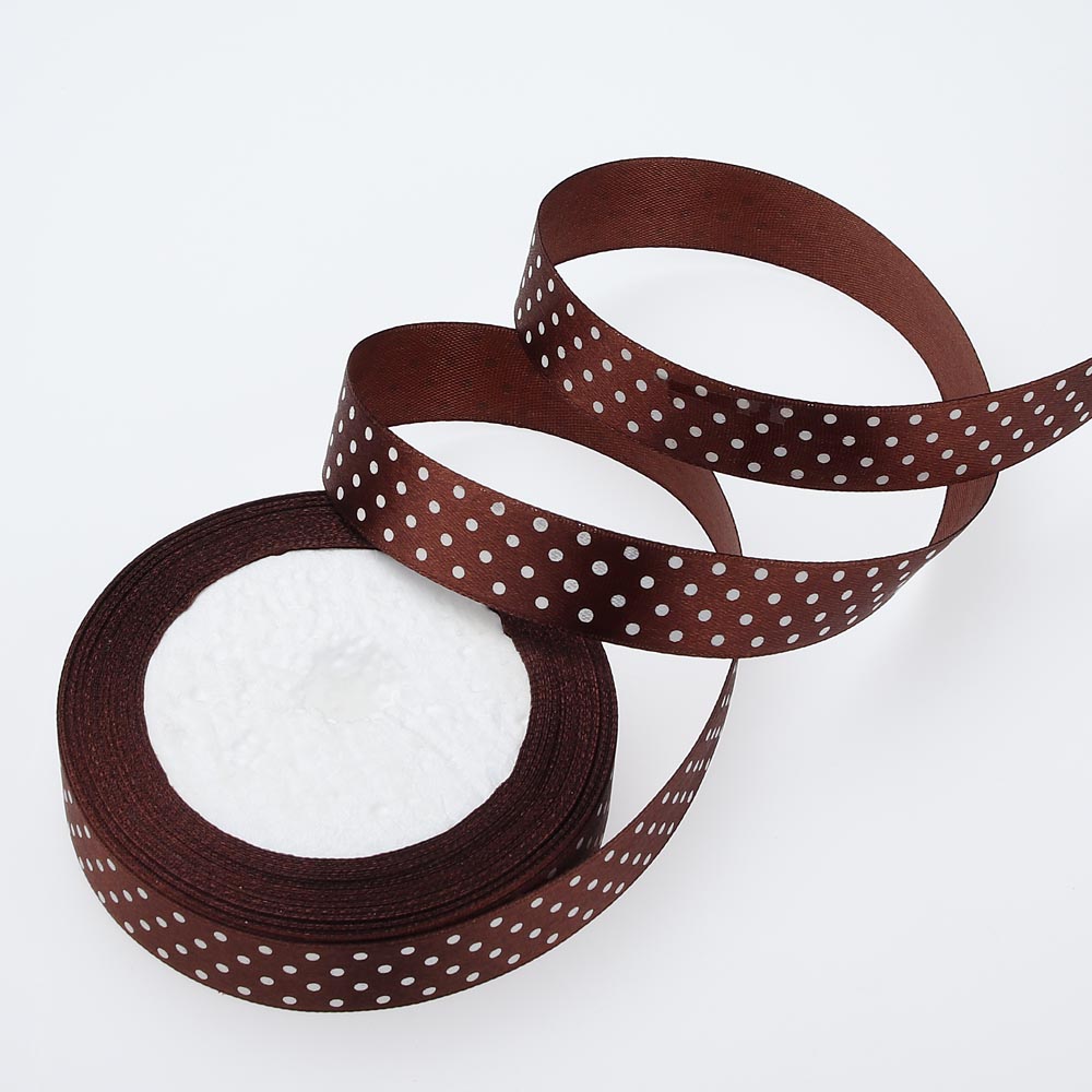 Лента атласная средний горошек 2 см 25 ярдов коричневая 032