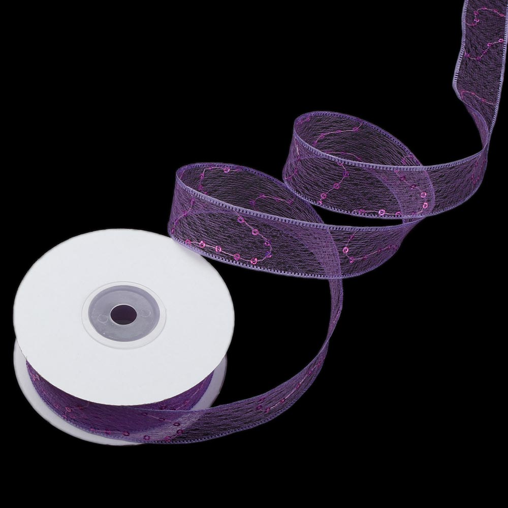 Лента паутинка с пайетками 2,5 см 15 ярдов сиреневая