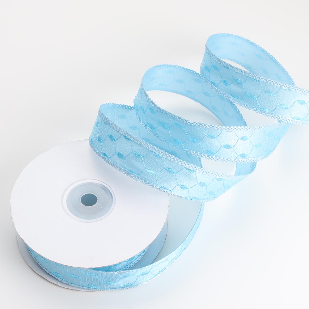 Лента атласная с сеткой 2,5 см 15 ярдов голубая