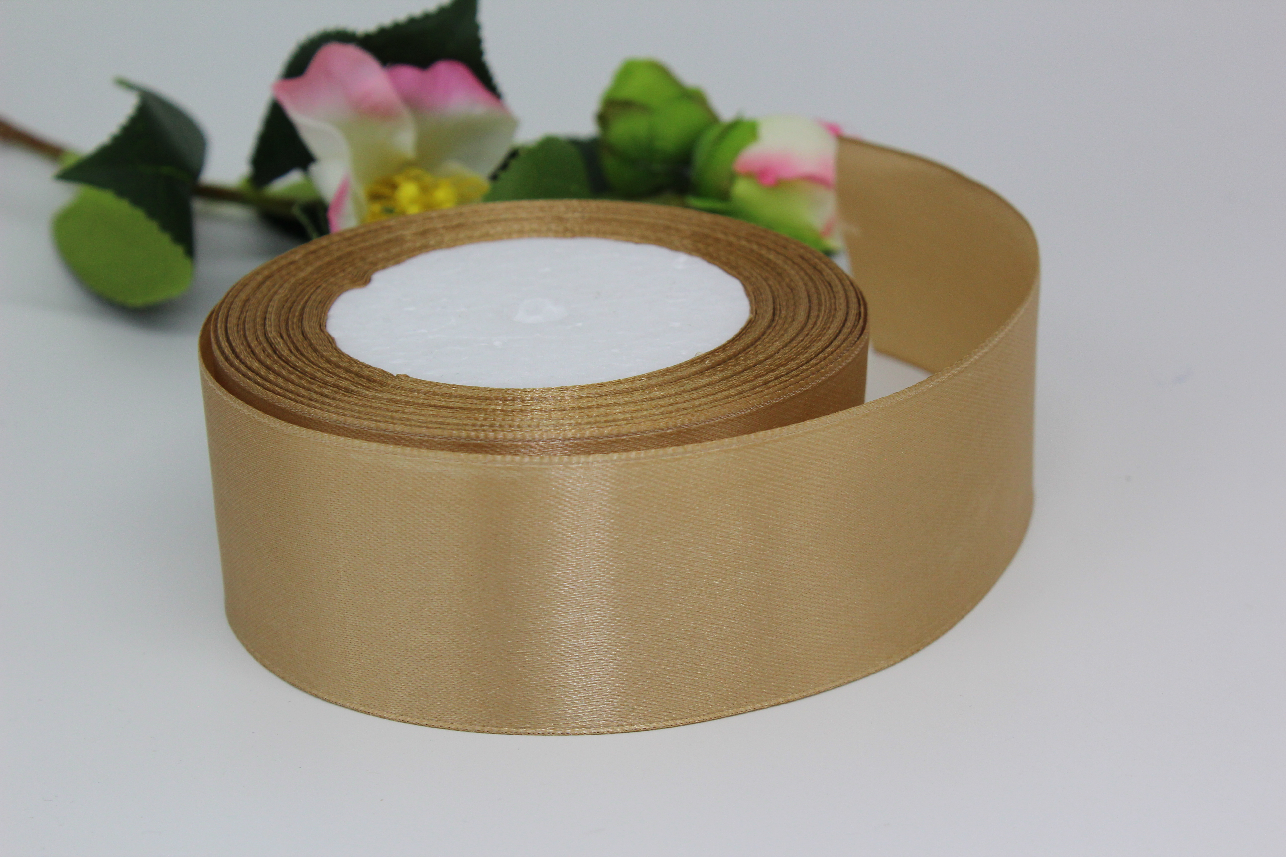 Лента атласная 4 см*25 ярдов бежевая 086