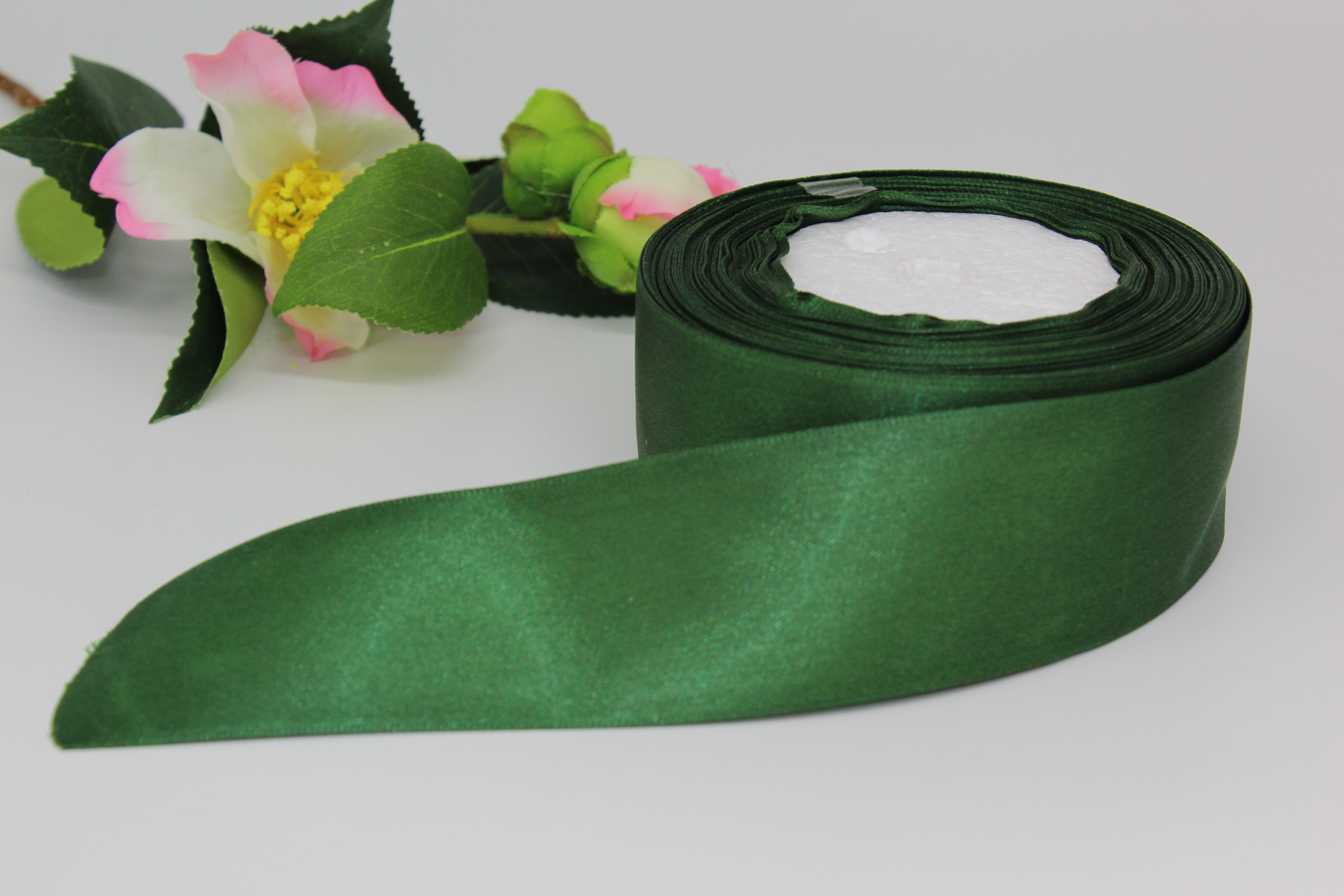 Лента атласная 4 см*25 ярдов зелёная 049