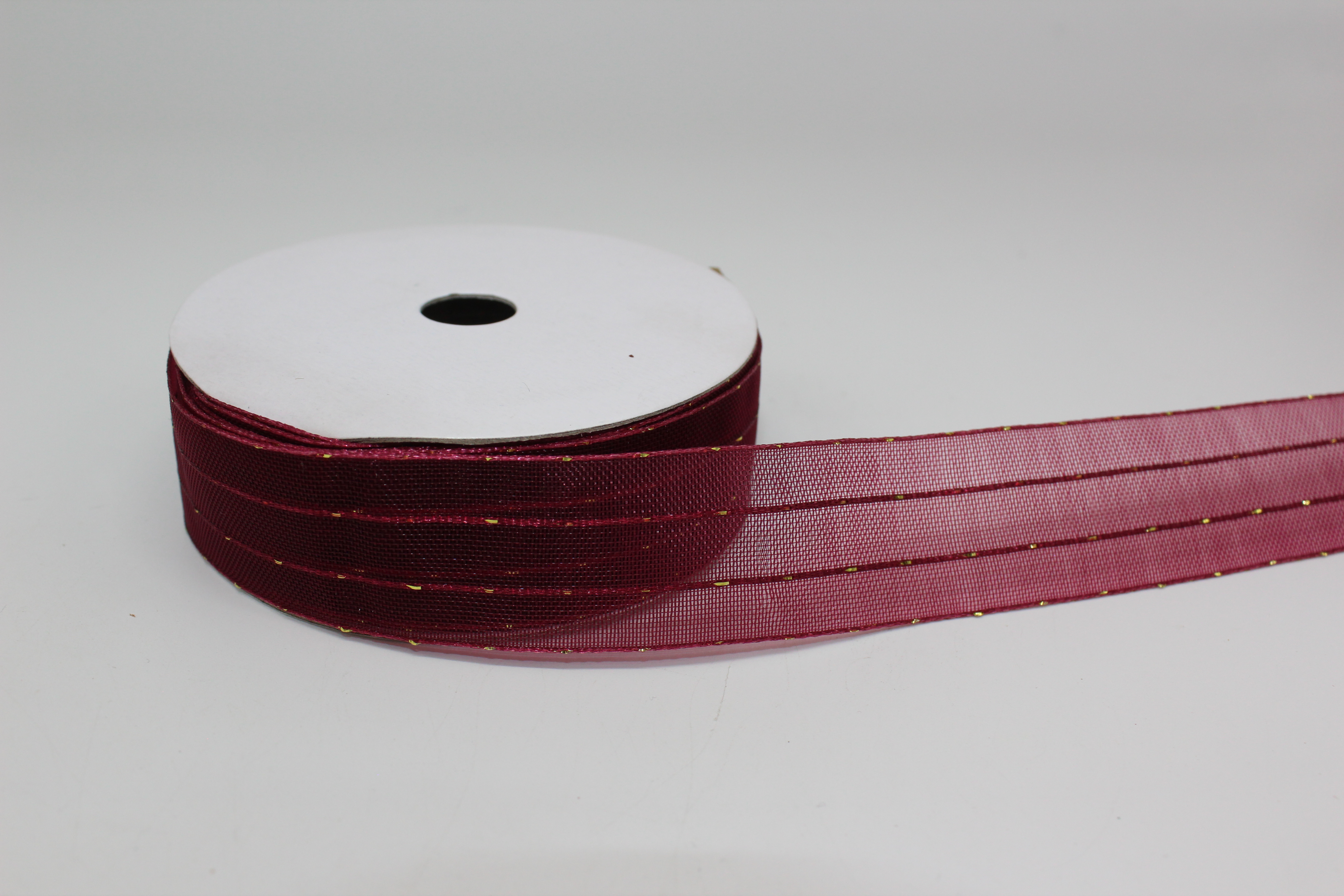 Лента органза "4 полосы" 2,5 см*5 ярдов бордо