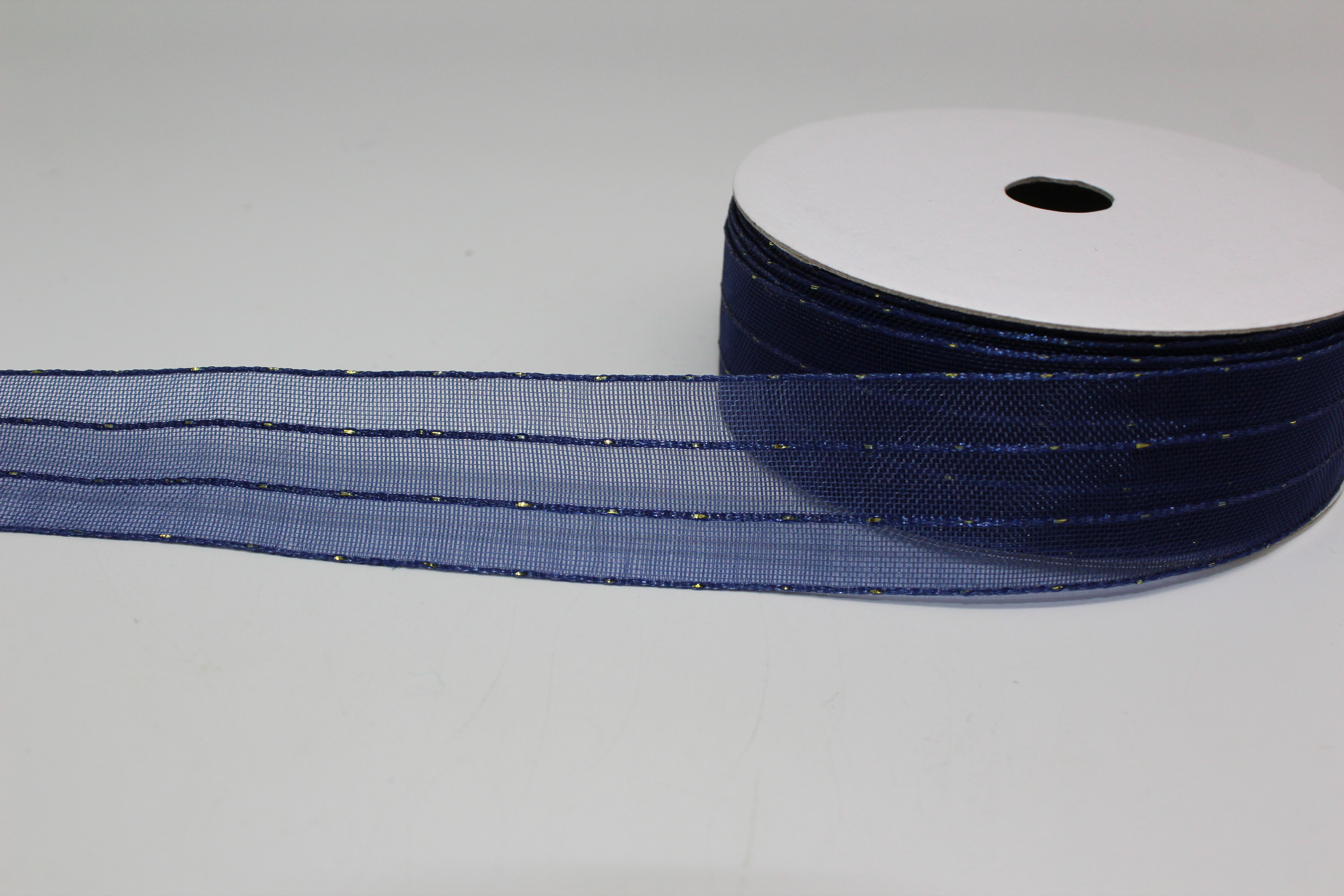 Лента органза "4 полосы" 2,5 см*5 ярдов синяя