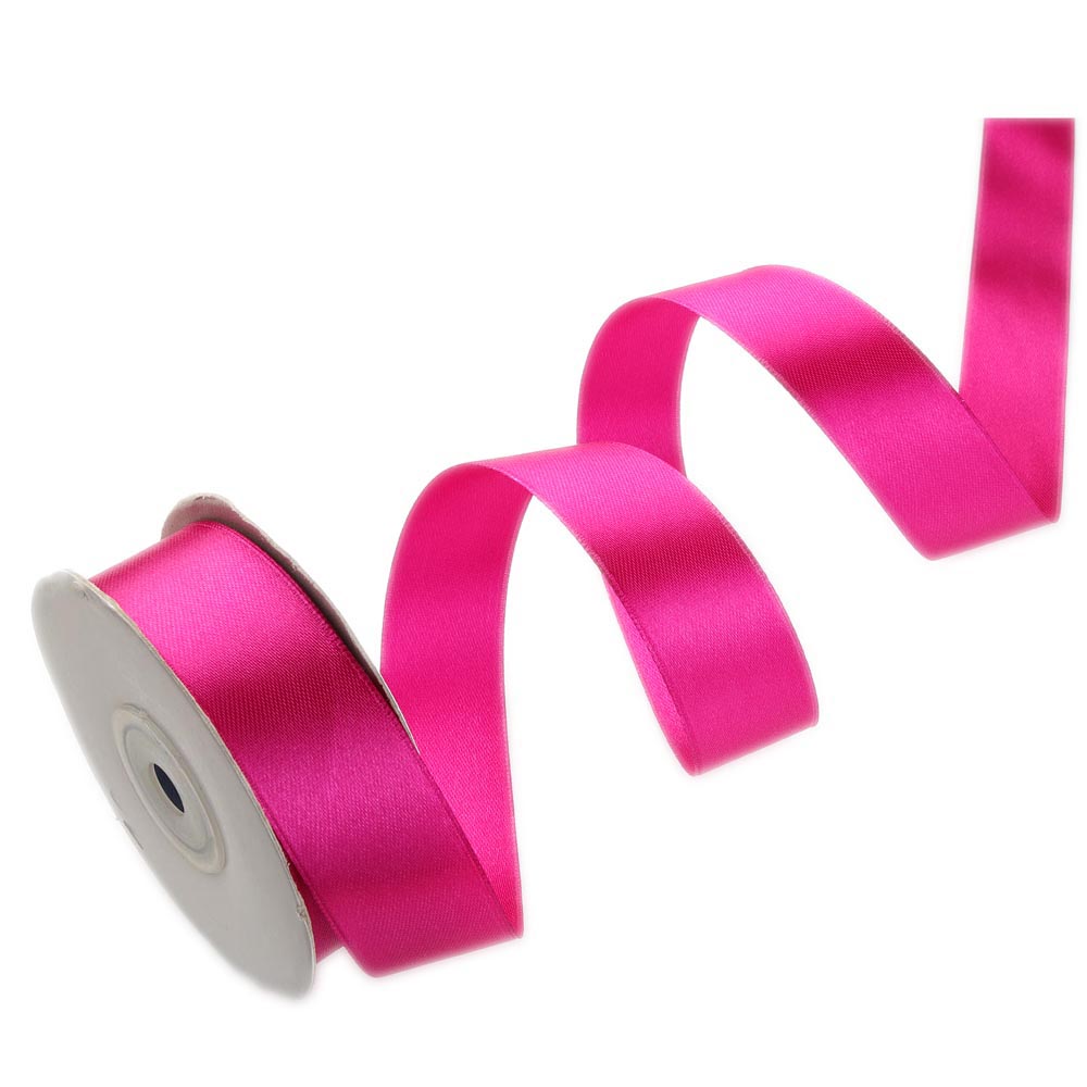 Лента атласная двухсторонняя 25 ярдов 2,5 см фуксия