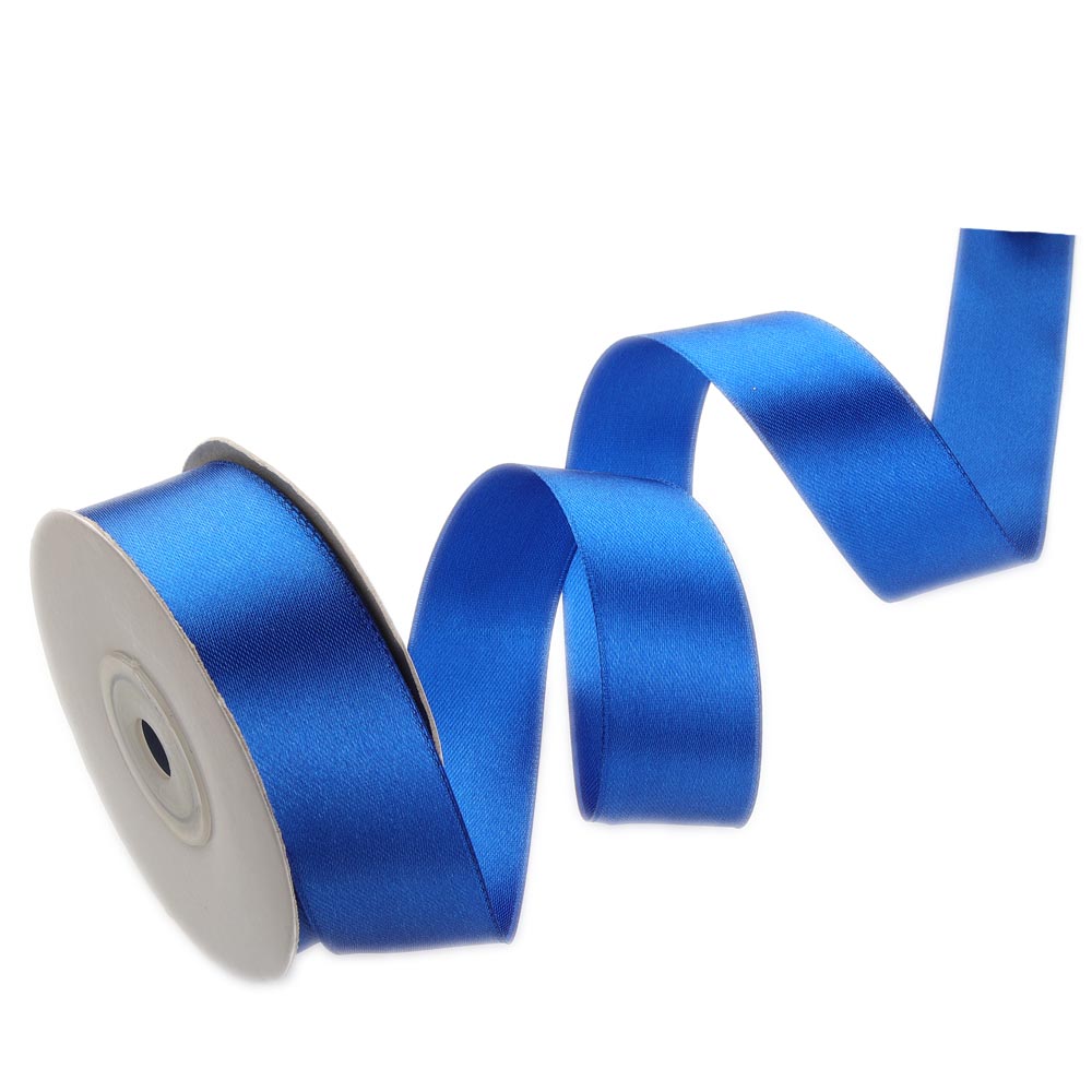 Лента атласная двухсторонняя 25 ярдов 2,5 см синяя
