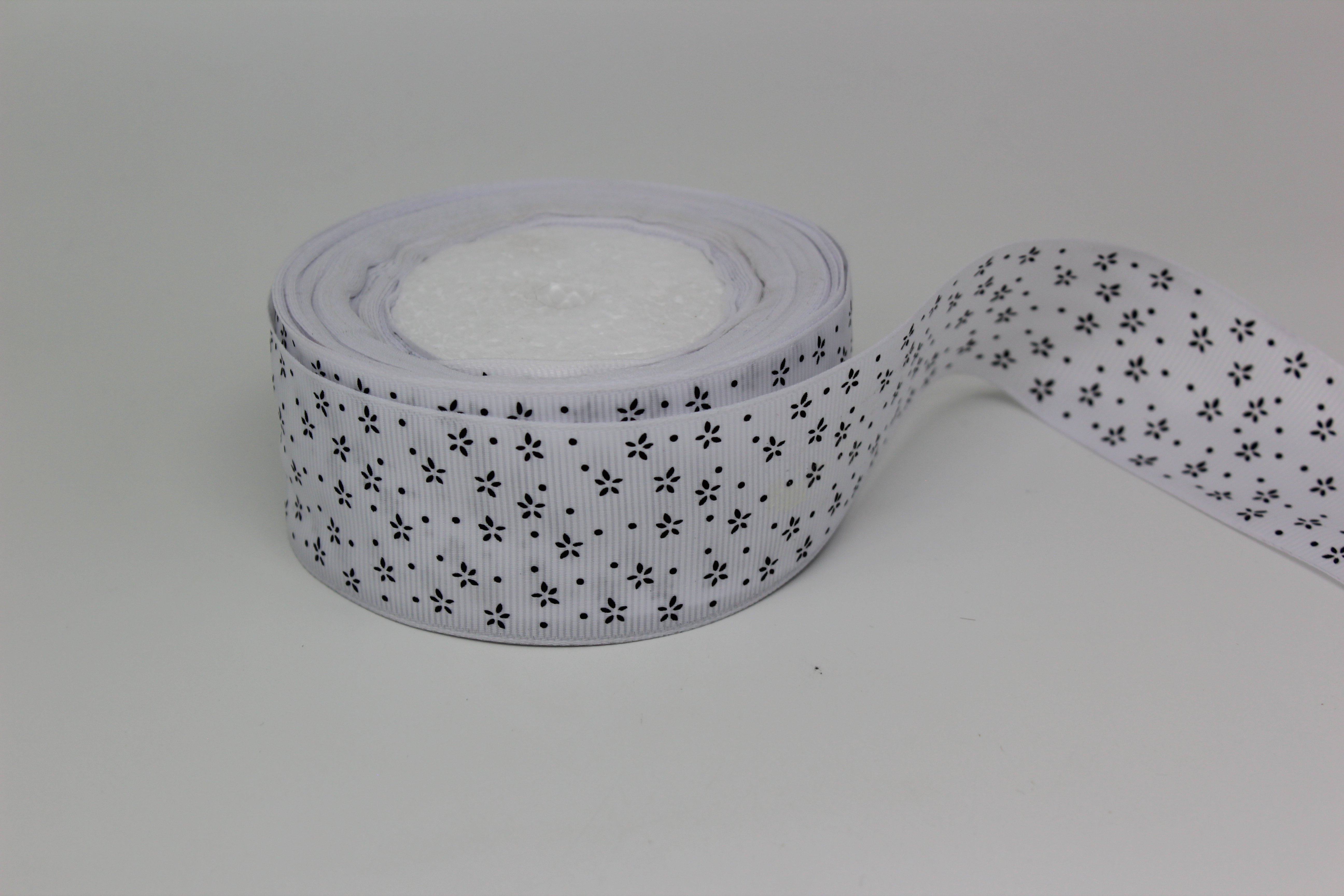 Лента репсовая декоративная "Мелкий цветок" 4 см*25 ярдов белая