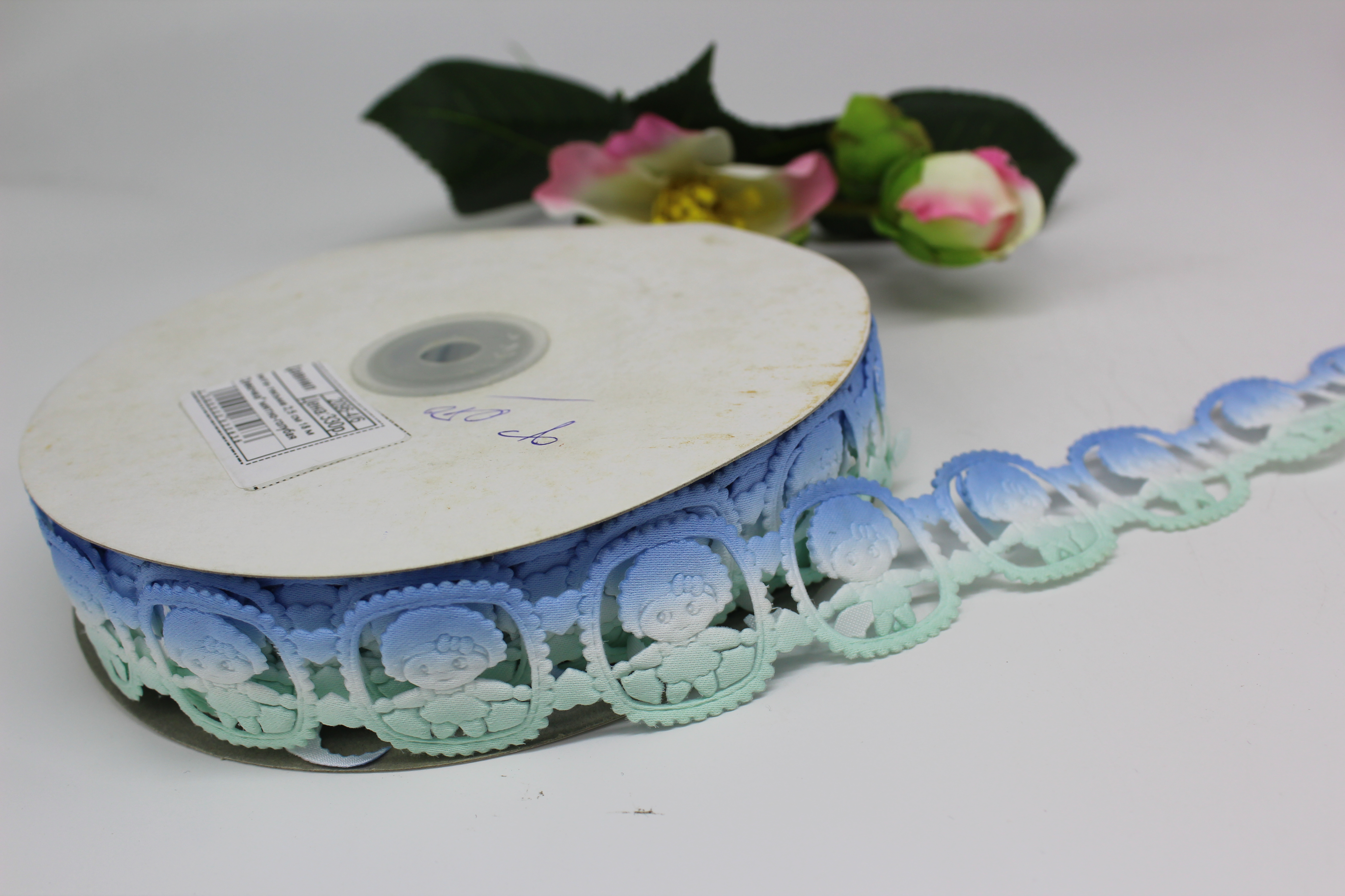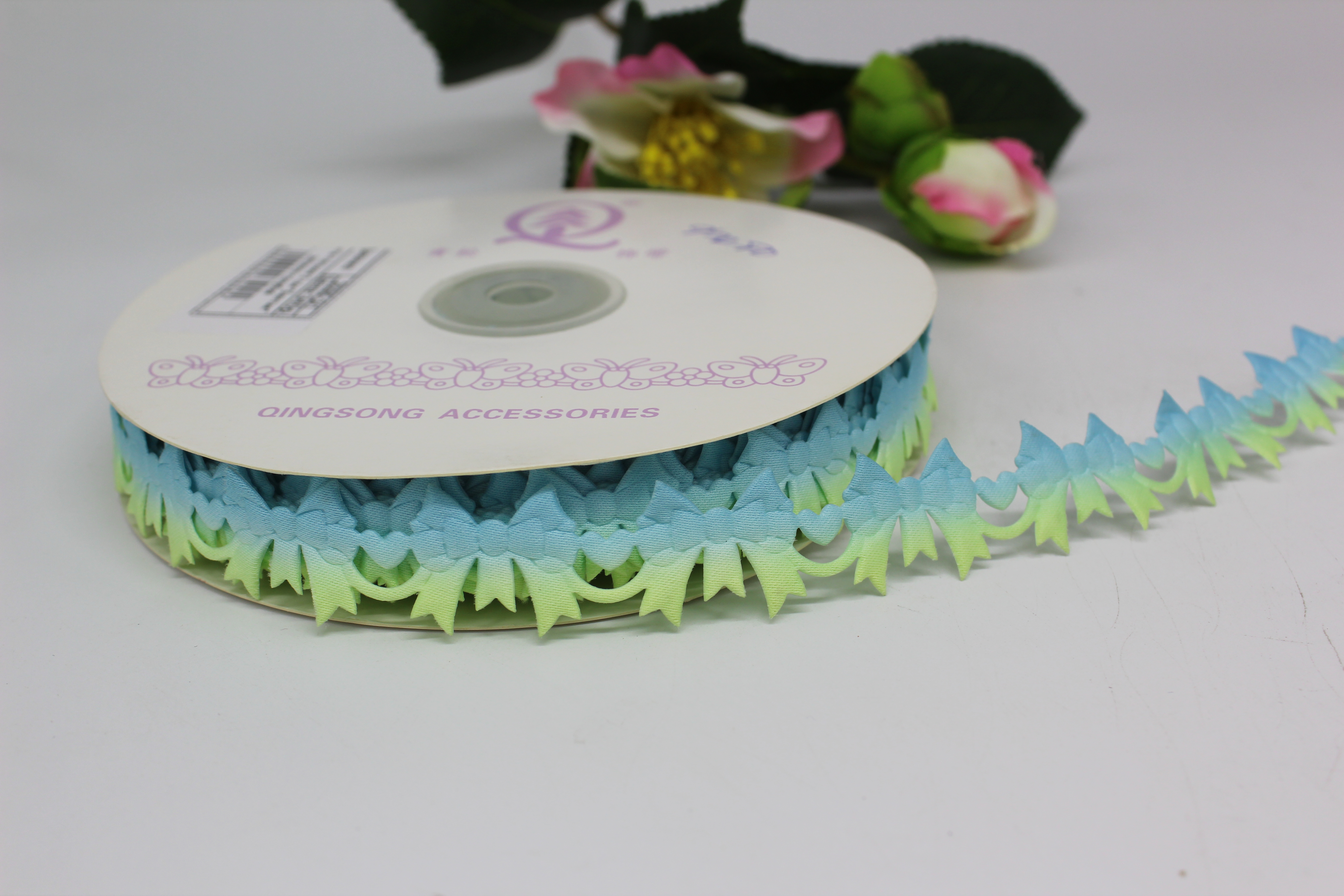 Лента-тесьма 2 см "Бантик" зелено-голубой