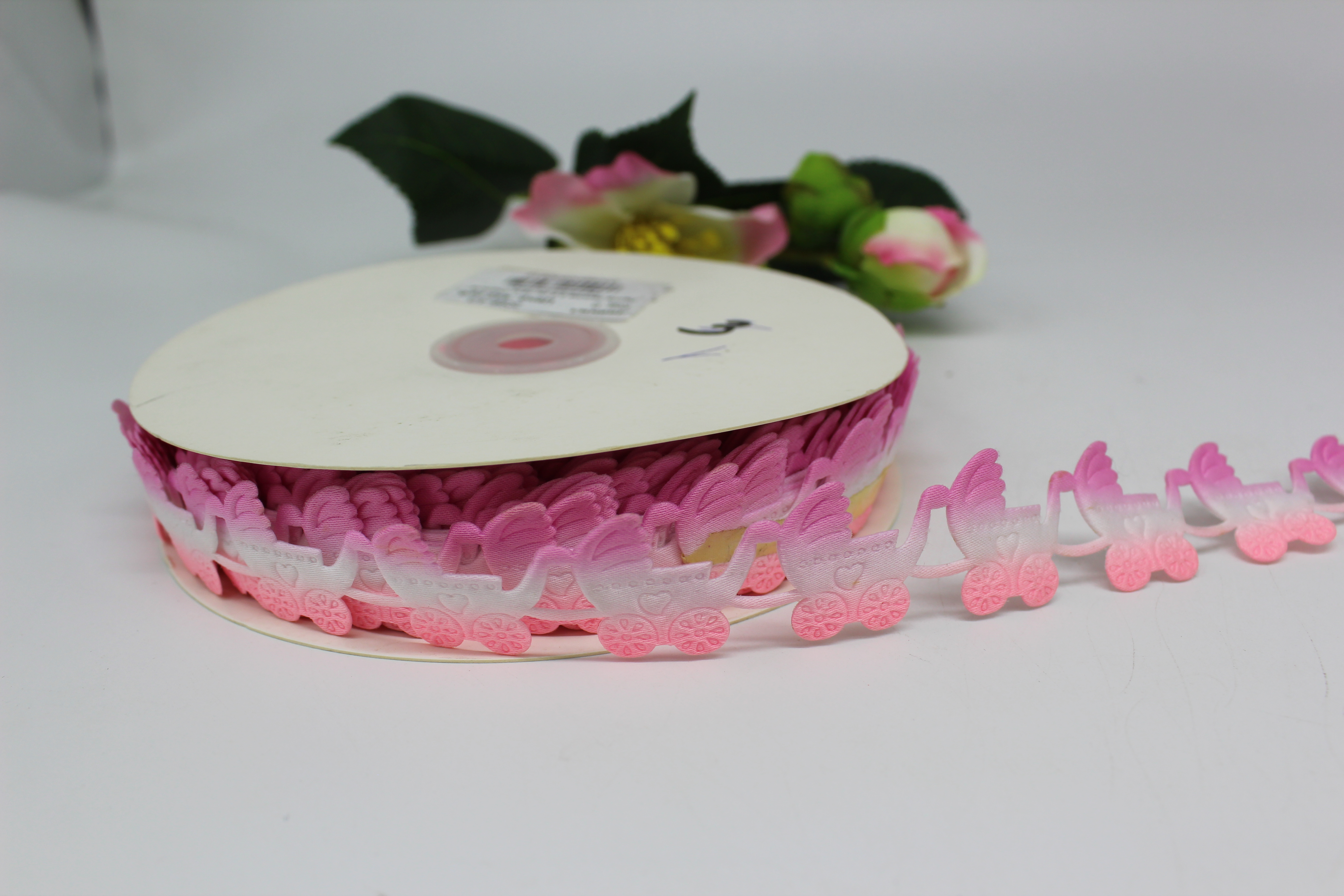 Лента-тесьма 2,5 см 18 м "Цветок" розовый
