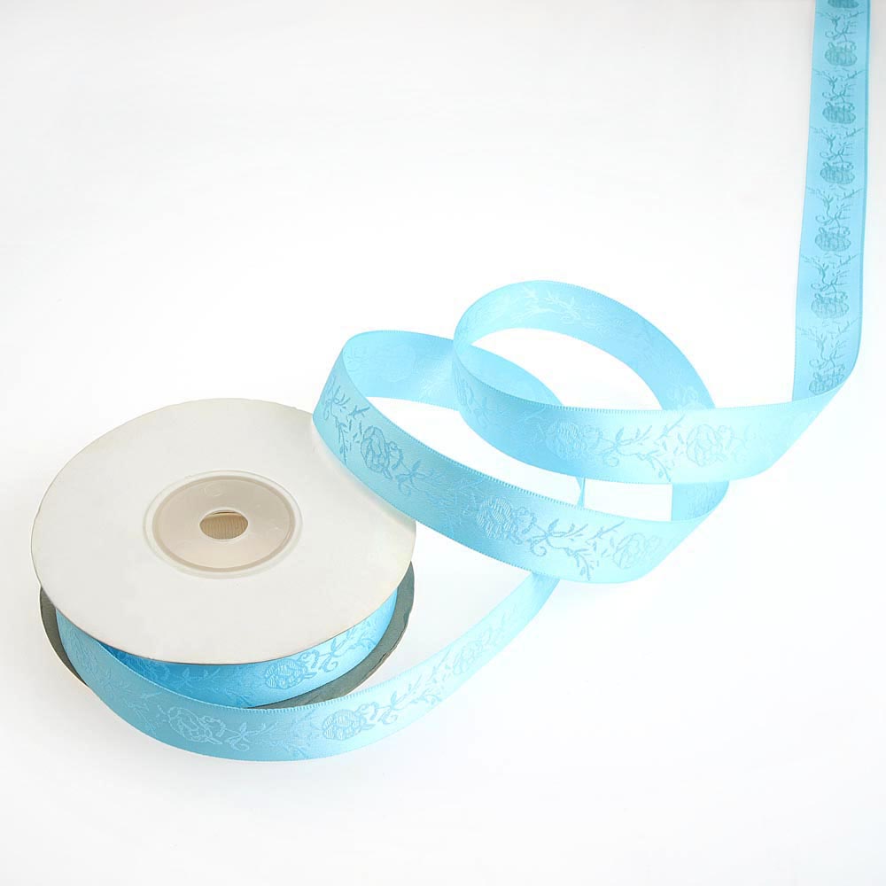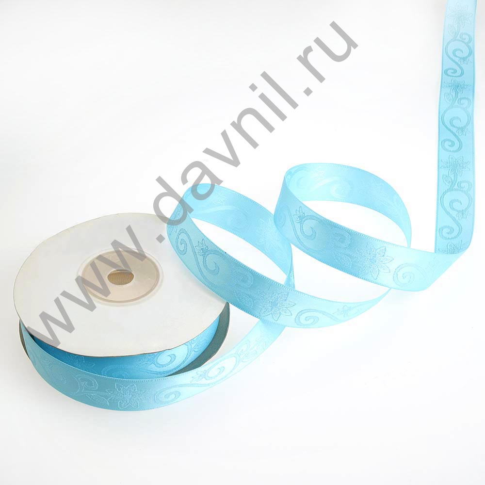 Лента жаккард розы 2,2 см 25 ярдов голубая 5022