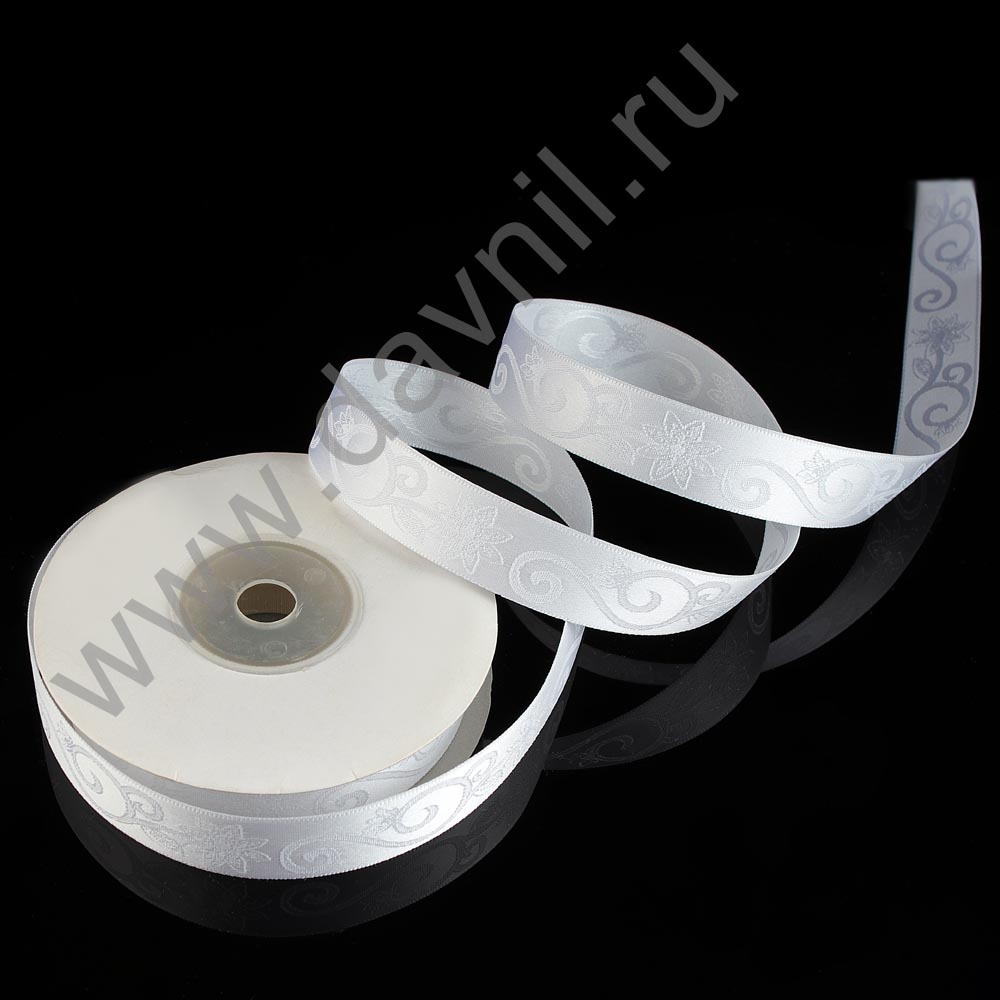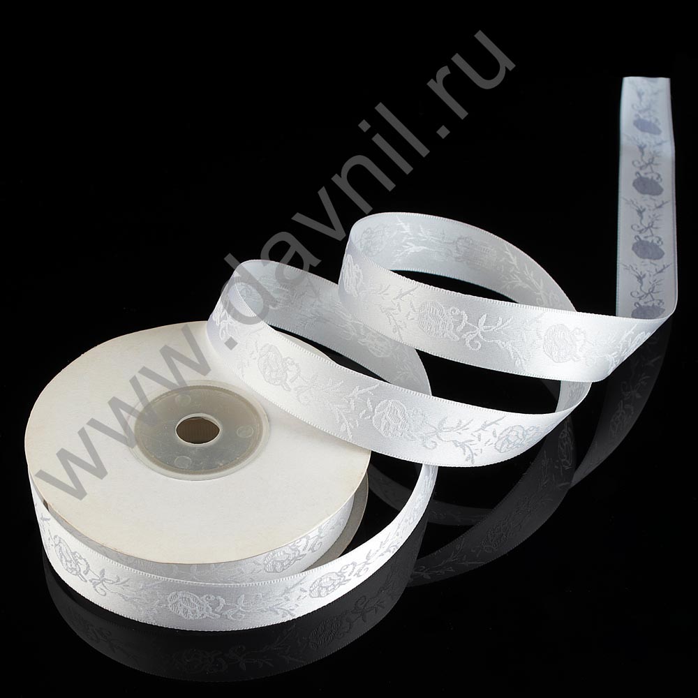 Лента 2,2 см жаккард 25 ярдов белая 5022