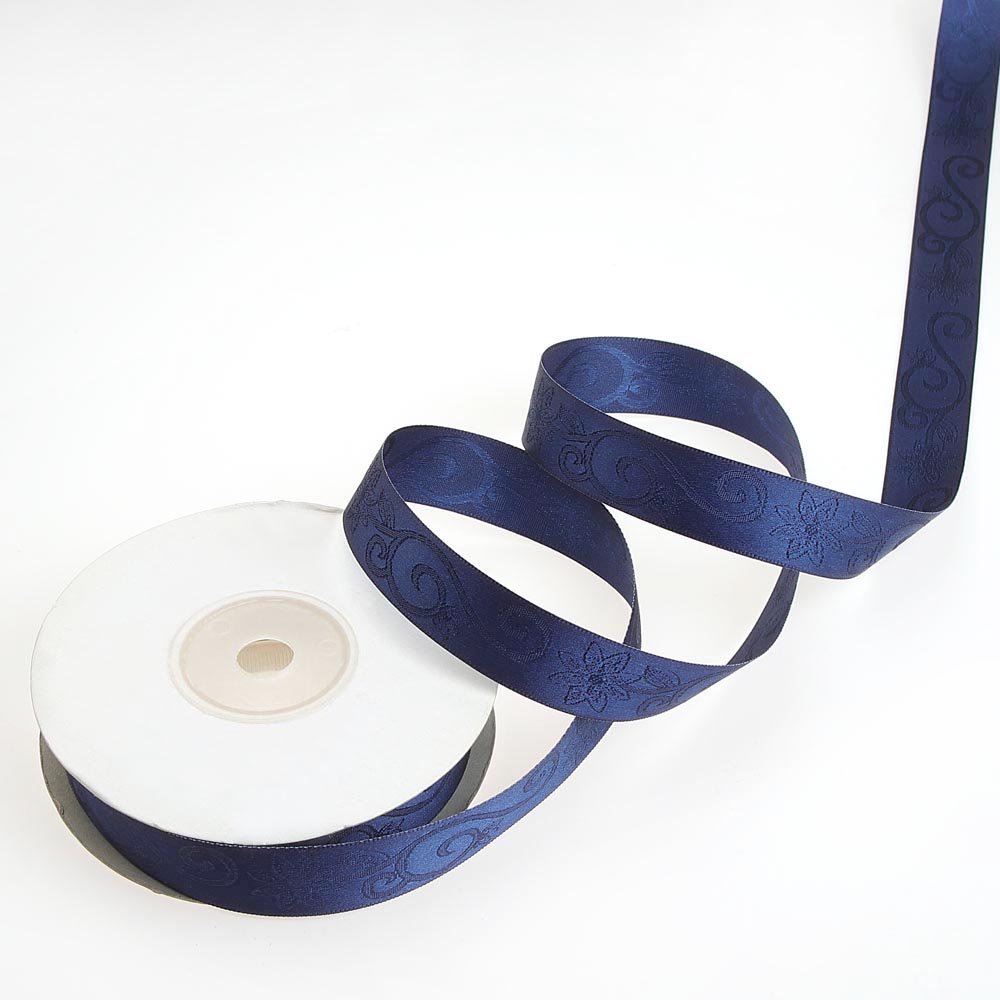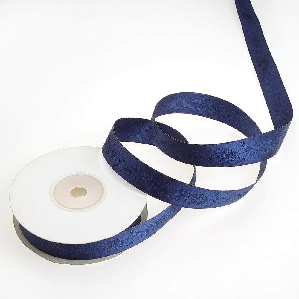 Лента жаккард розы 2,2 см 25 ярдов т.синяя 5022