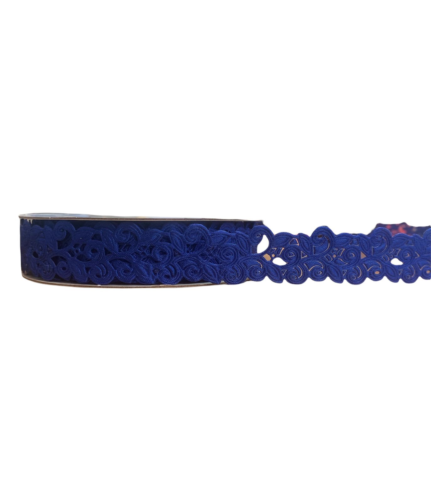 Лента атласная ажурная 2,5 см 15 ярдов синяя 040