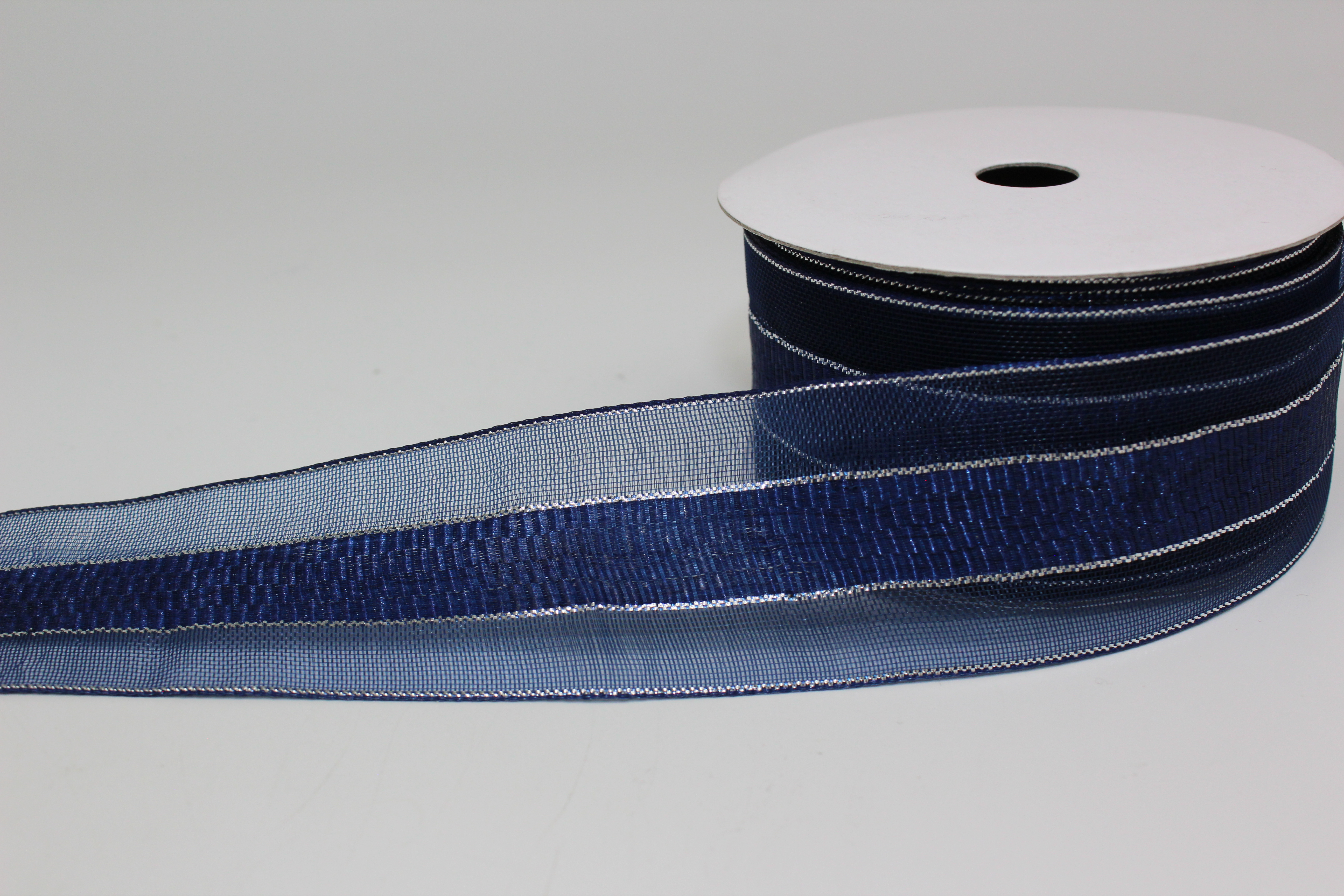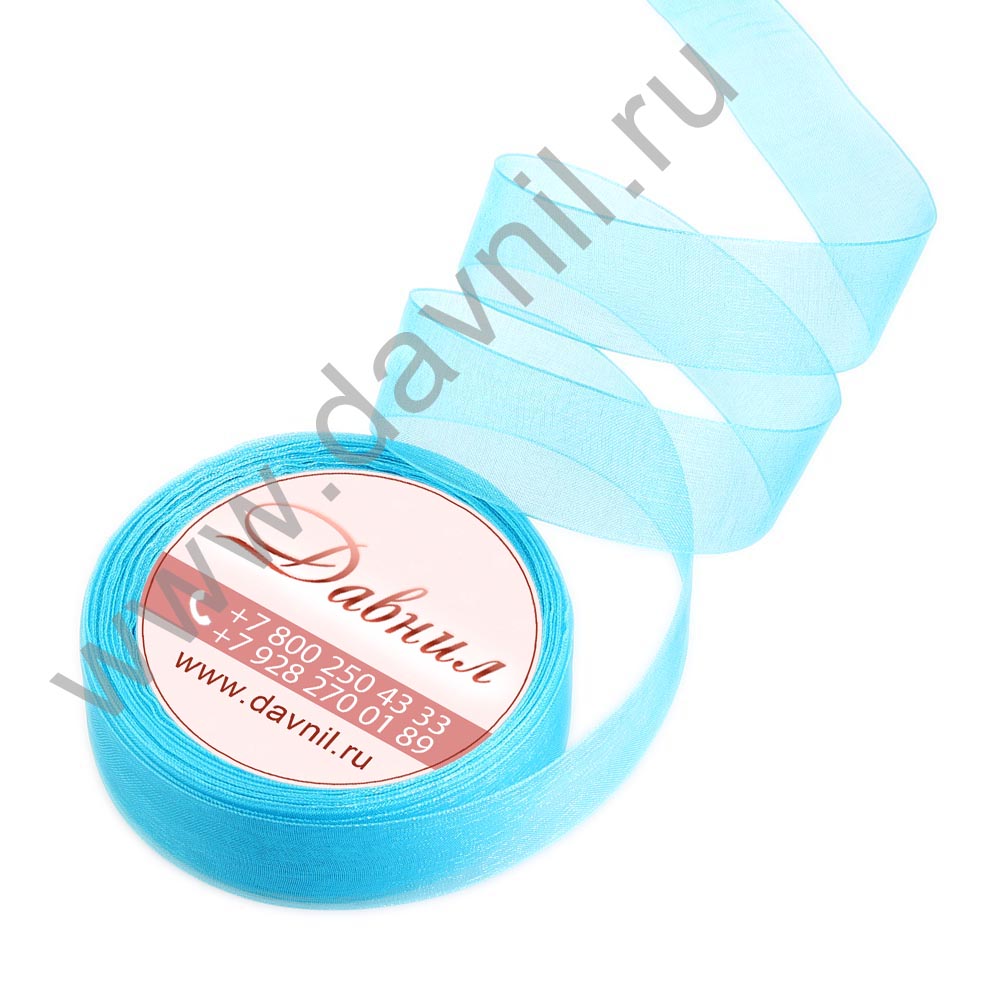 Лента органза 4 см 5 ярдов с 1 полоской голубая