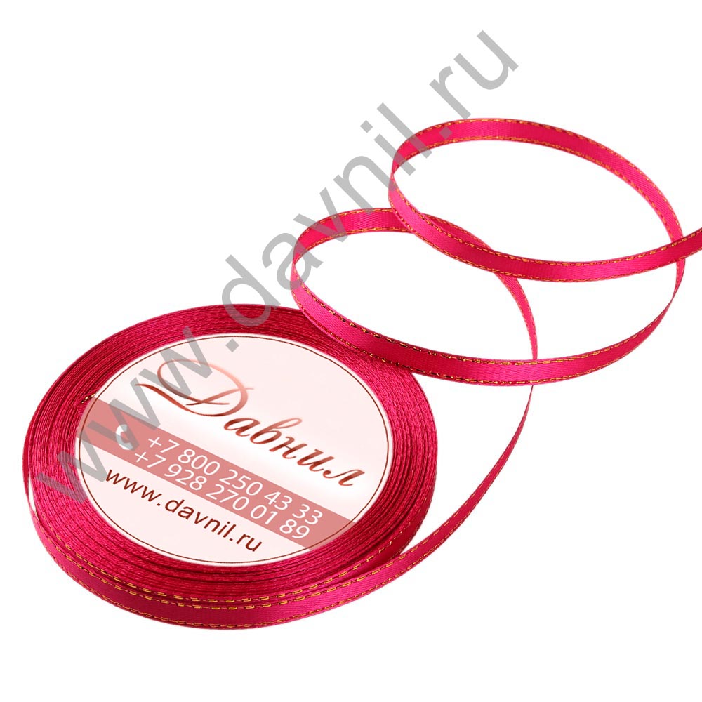 Лента атласная с золотым люрексом 0,6 см*20 ярдов фуксия 072