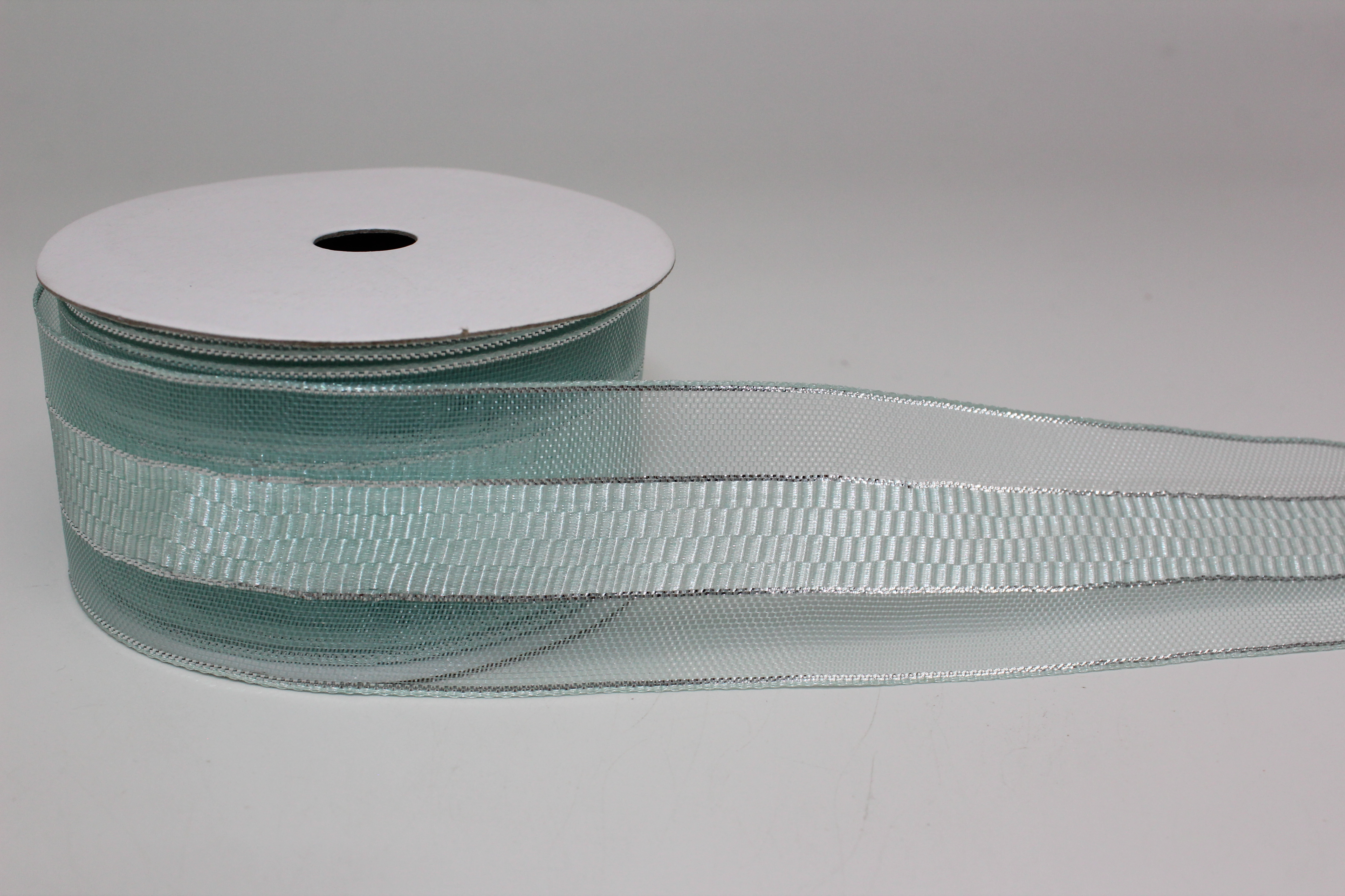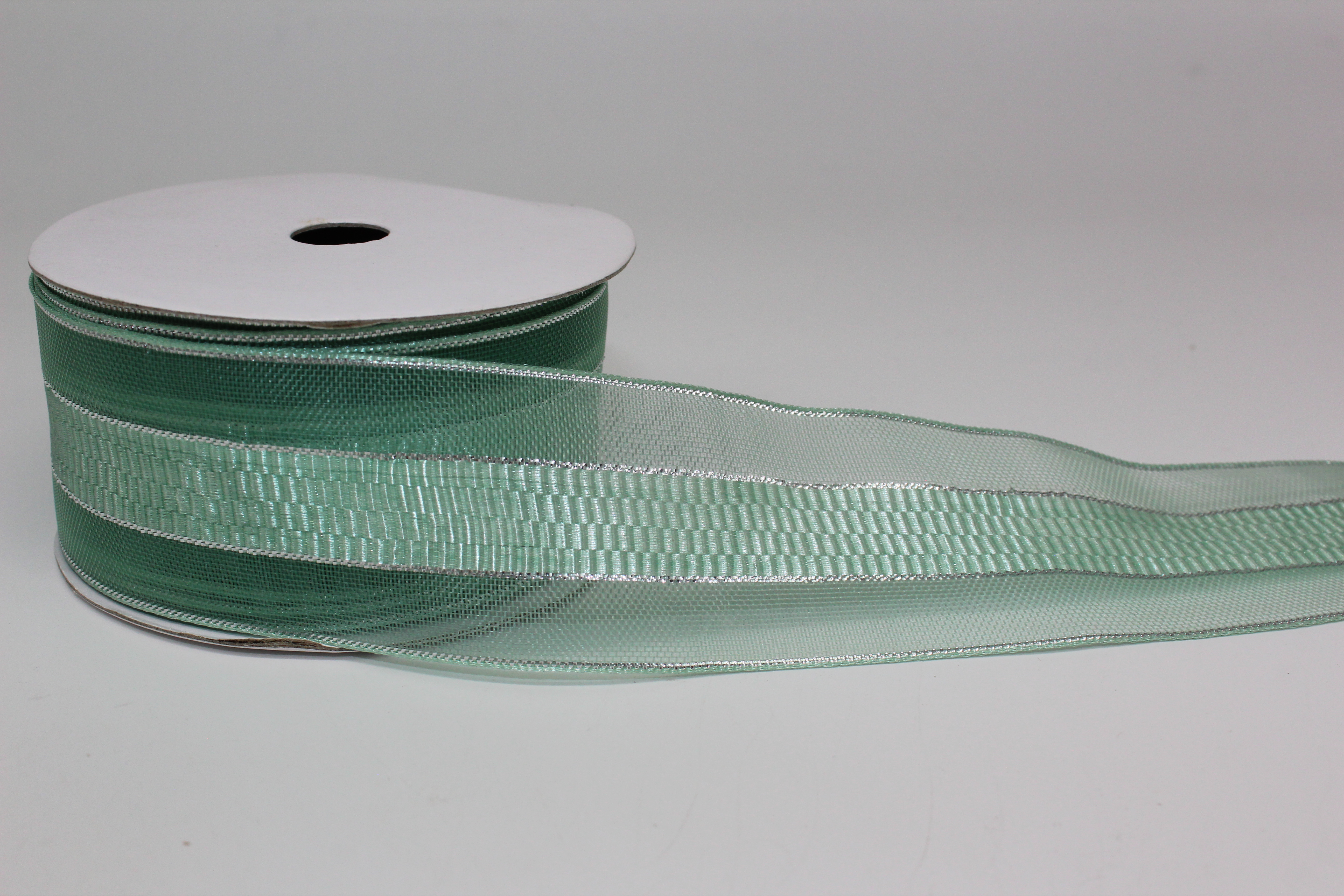 Лента органза 4 см 5 ярдов с 4 полоской зеленая