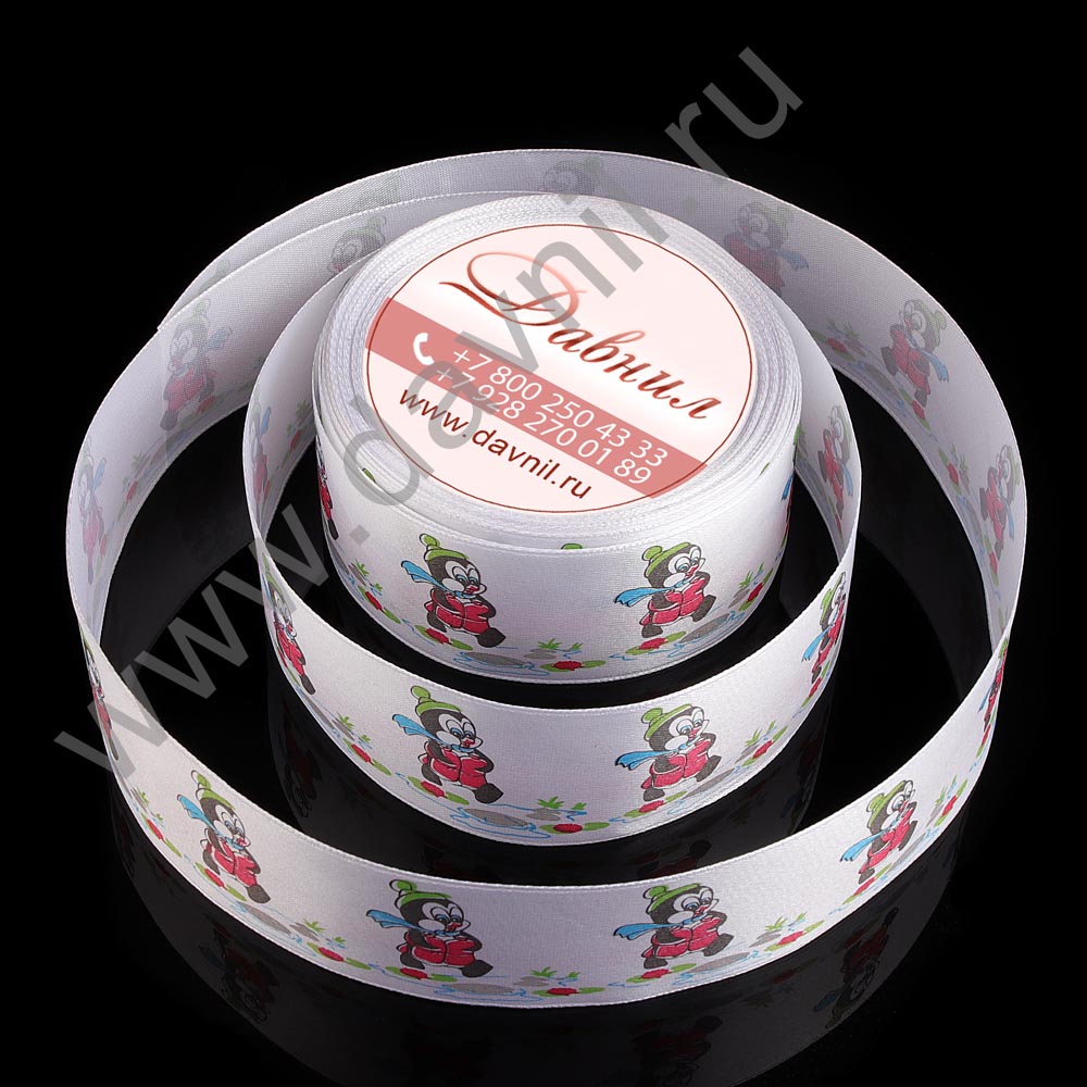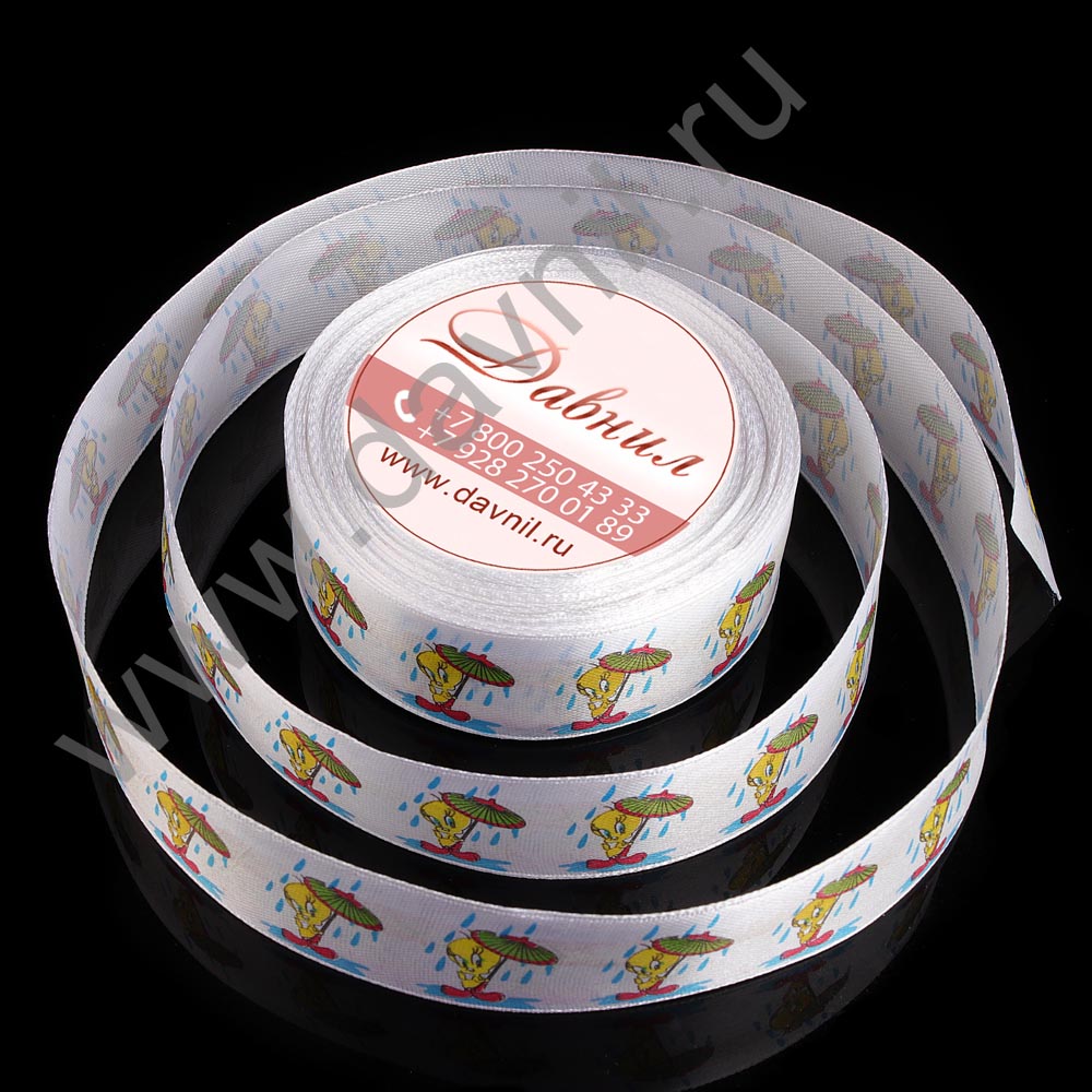 Лента атласная детская "Цыплёнок с зонтом"2,5 см 18 ярд