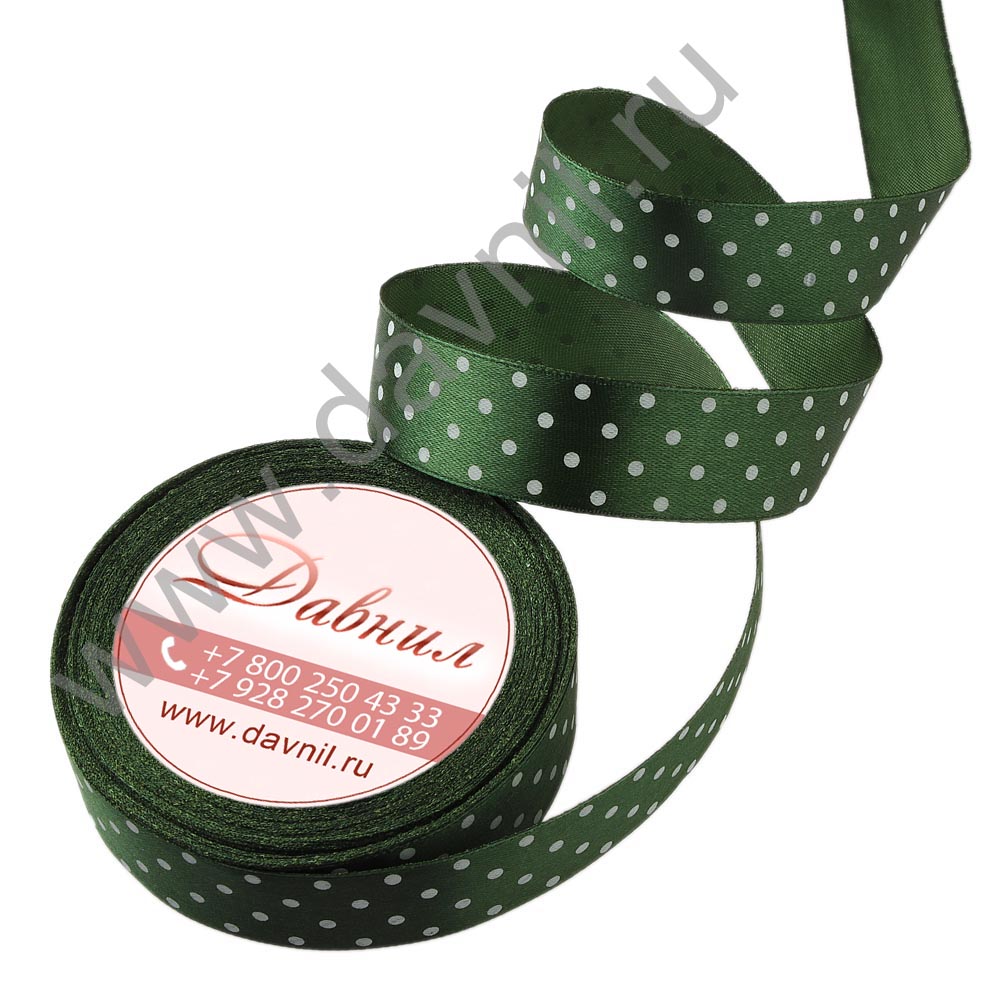 Лента атласная мелкий горошек 2,5 см 25 ярдов зеленая 049