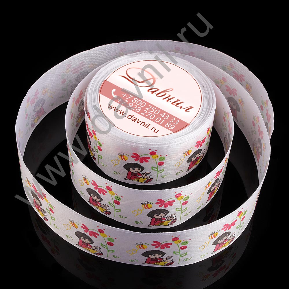 Лента атласная детская "Кукла с циплёнком " 4 см 18 ярд