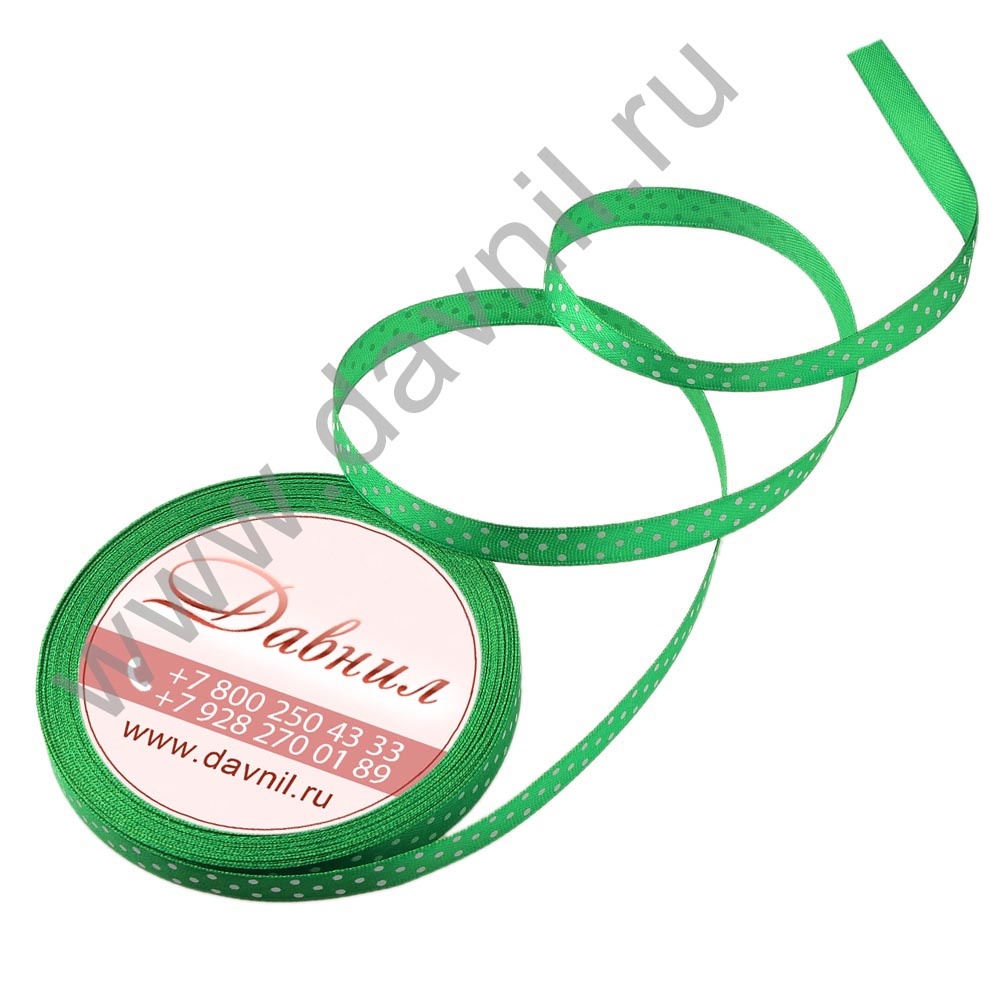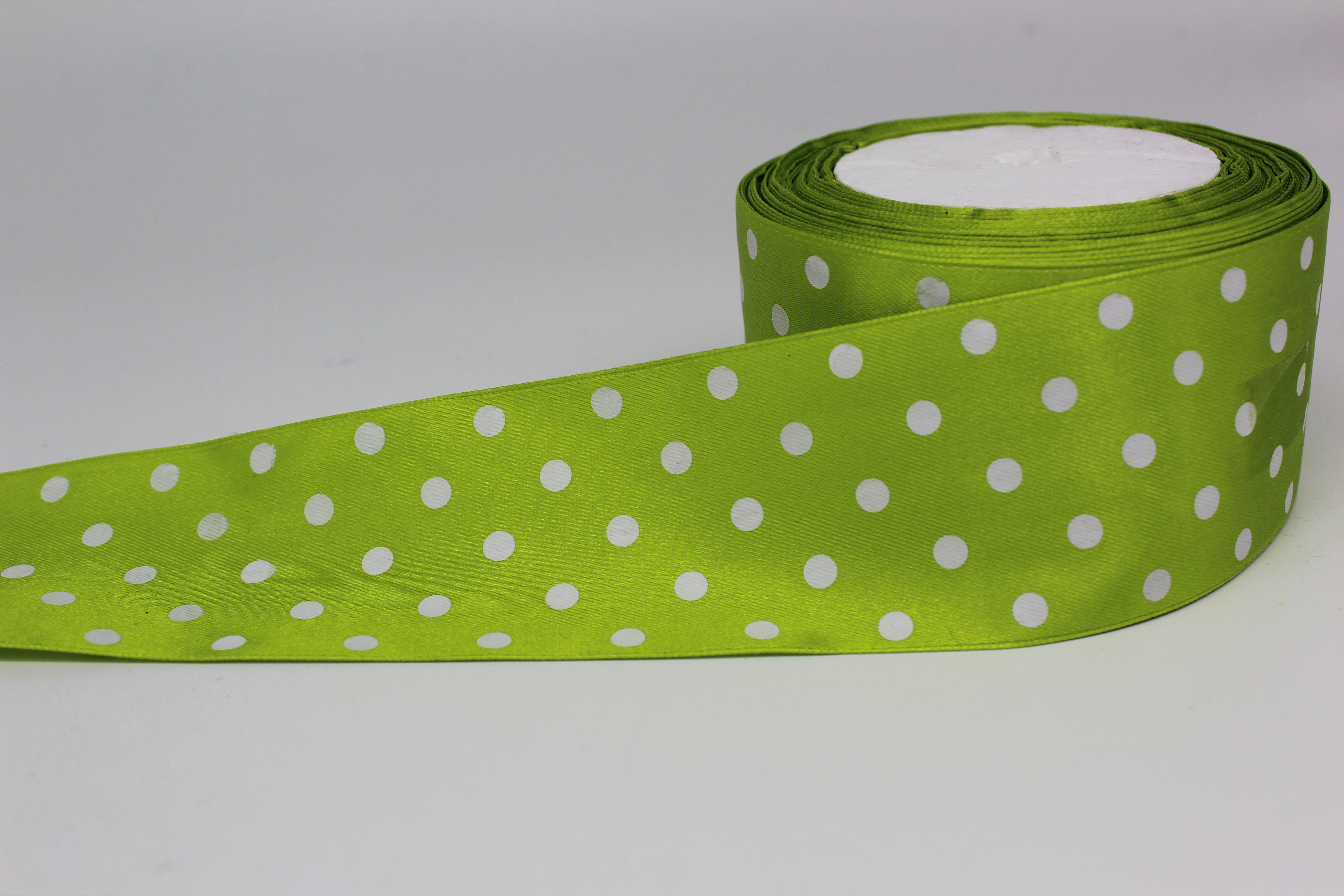 Лента атласная мелкий горошек 4 см 25 ярдов зеленая 019