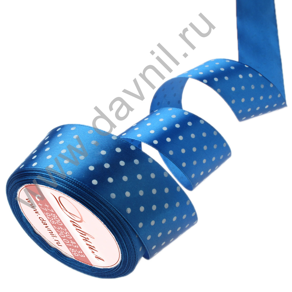 Лента атласная средний горошек 4 см 25 ярдов синяя 121