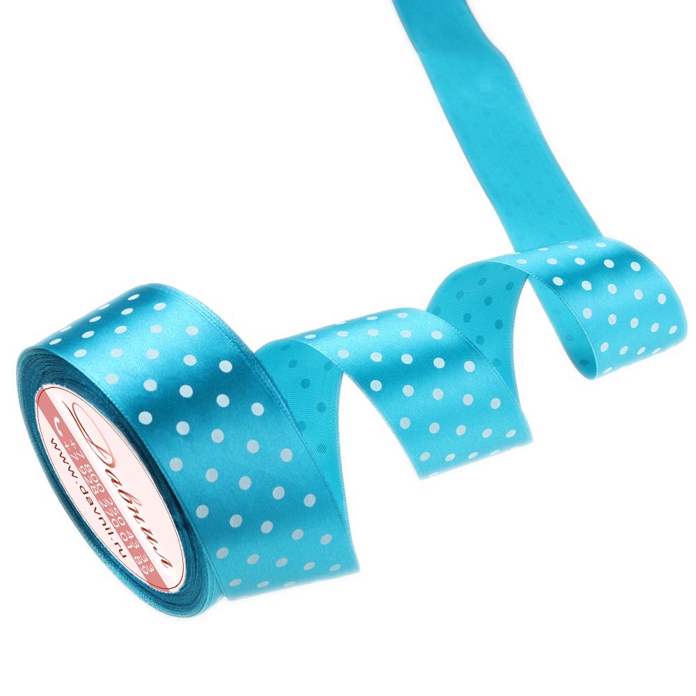 Лента атласная мелкий горошек 2,5 см 25 ярдов голубая 187
