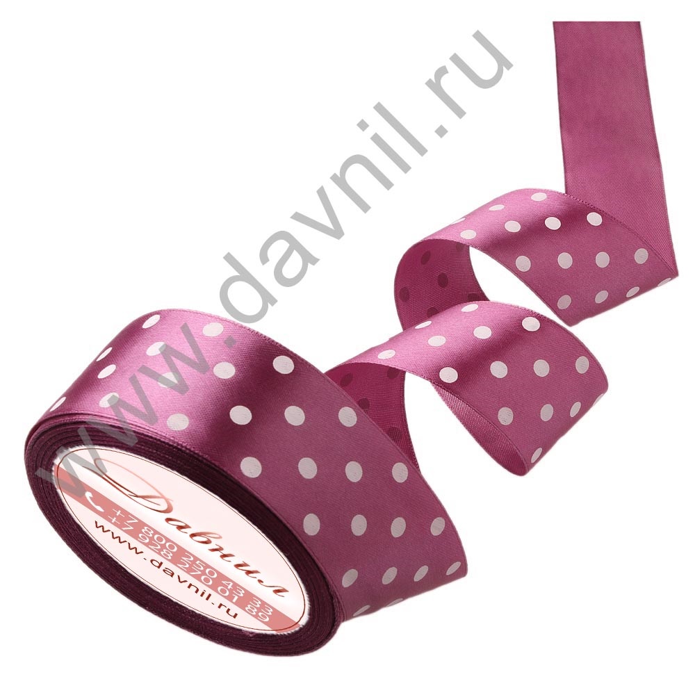 Лента атласная крупный горошек 4 см 25 ярдов лиловая 171