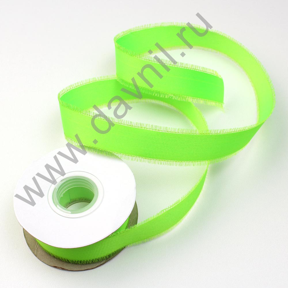 Лента репсовая 2,5 см*10 ярдов с ресничками салатовая
