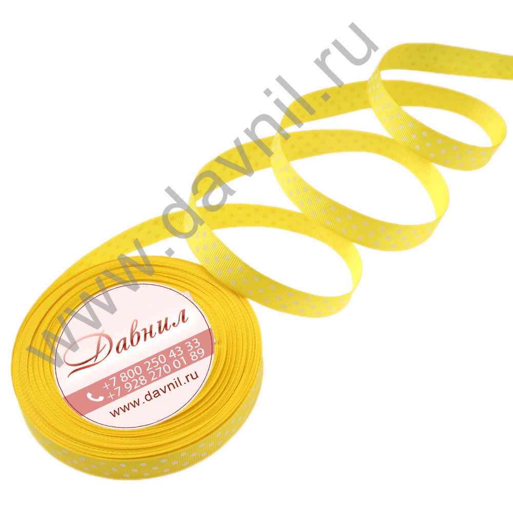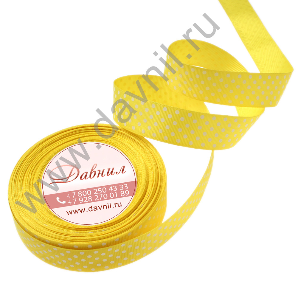 Лента репсовая мелкий горошек 1,5 см 25 ярдов желтая 16