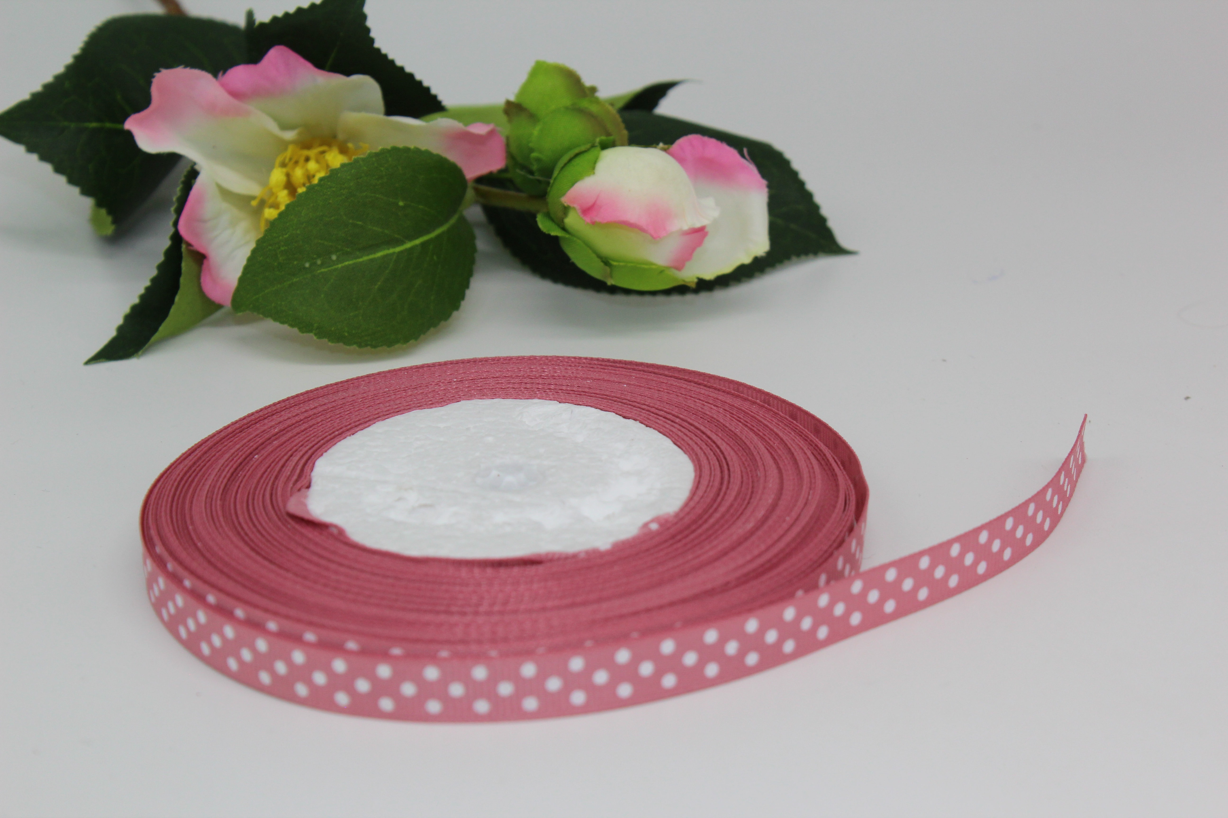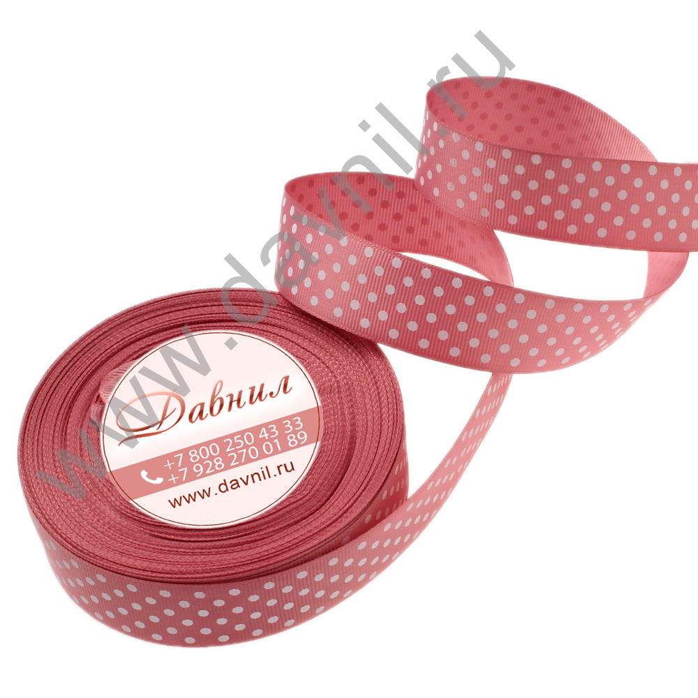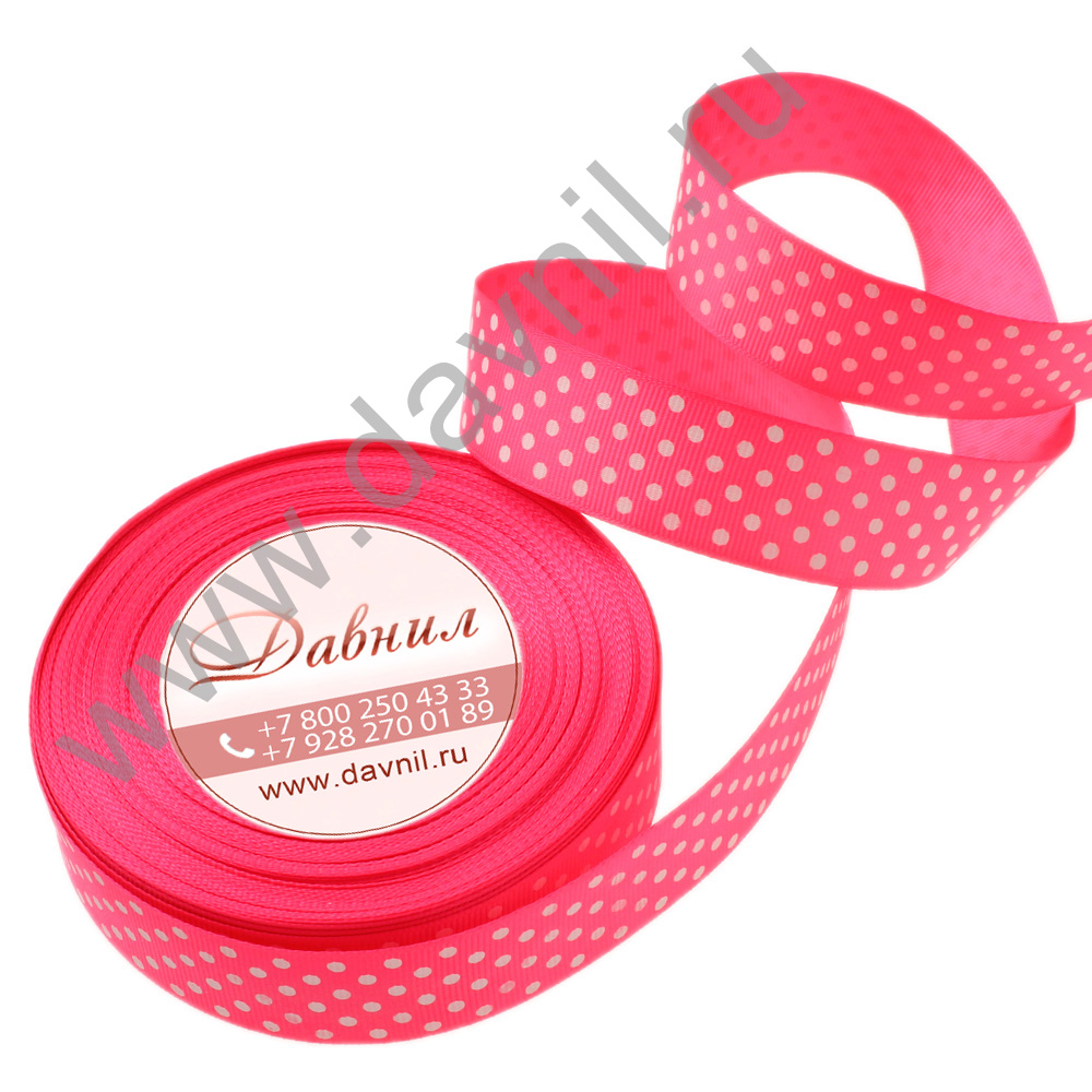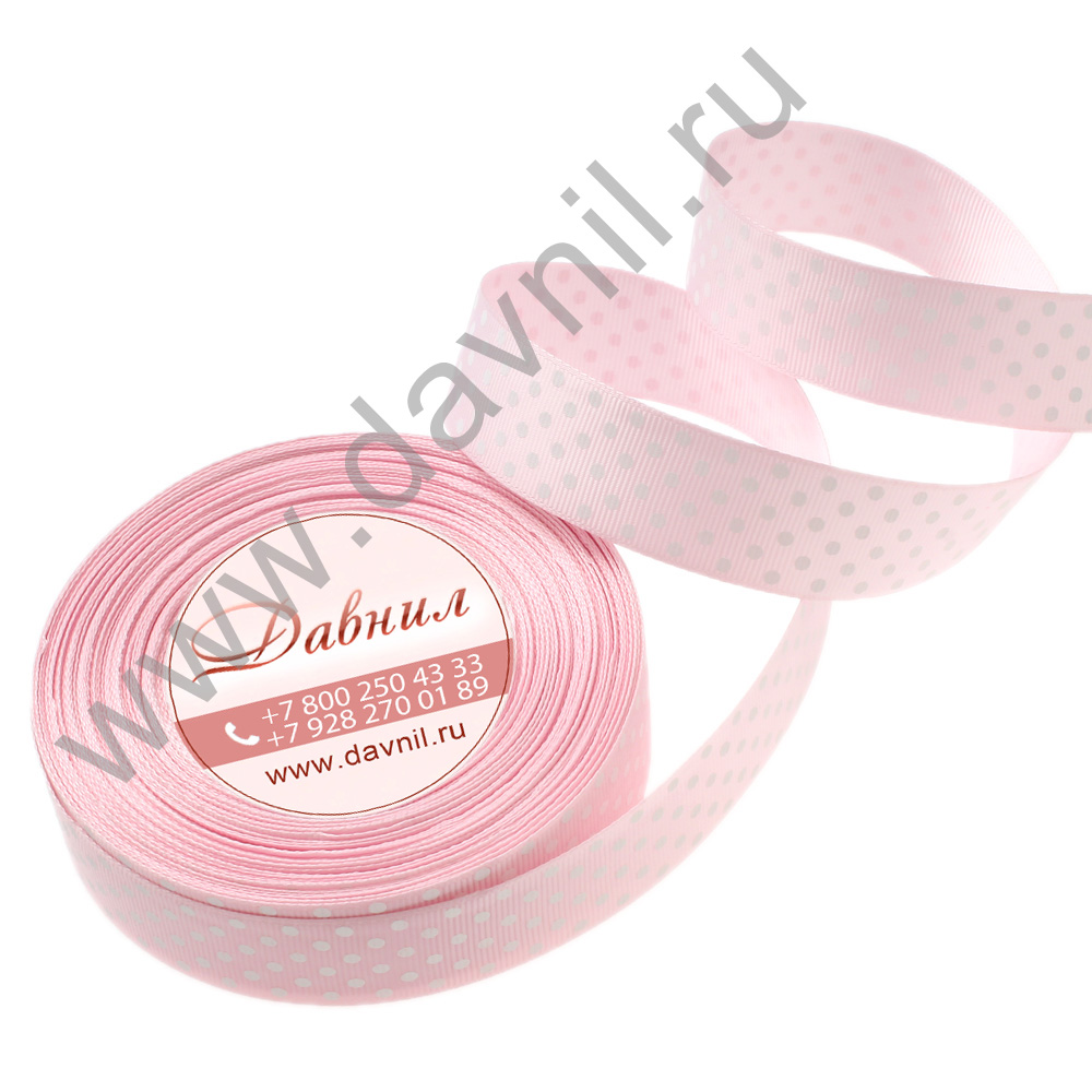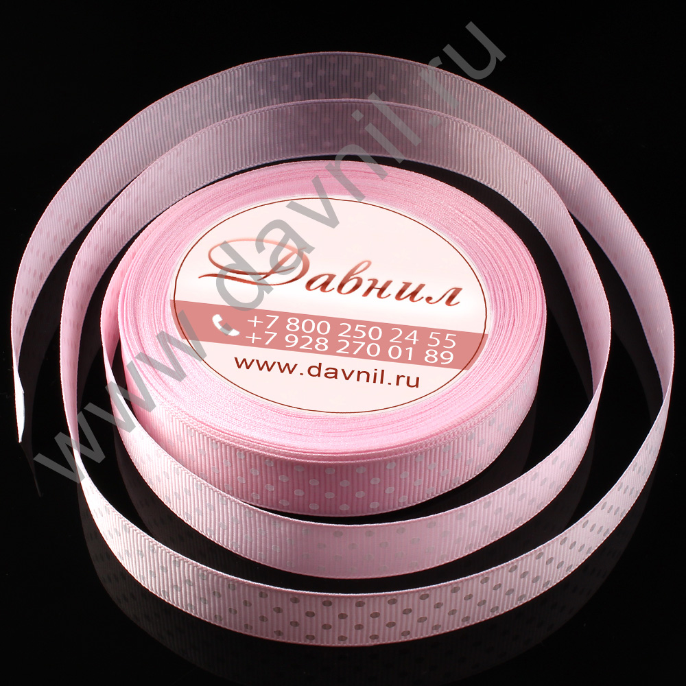 Лента репсовая мелкий горошек 2,5 см 25 ярдов розовая 4